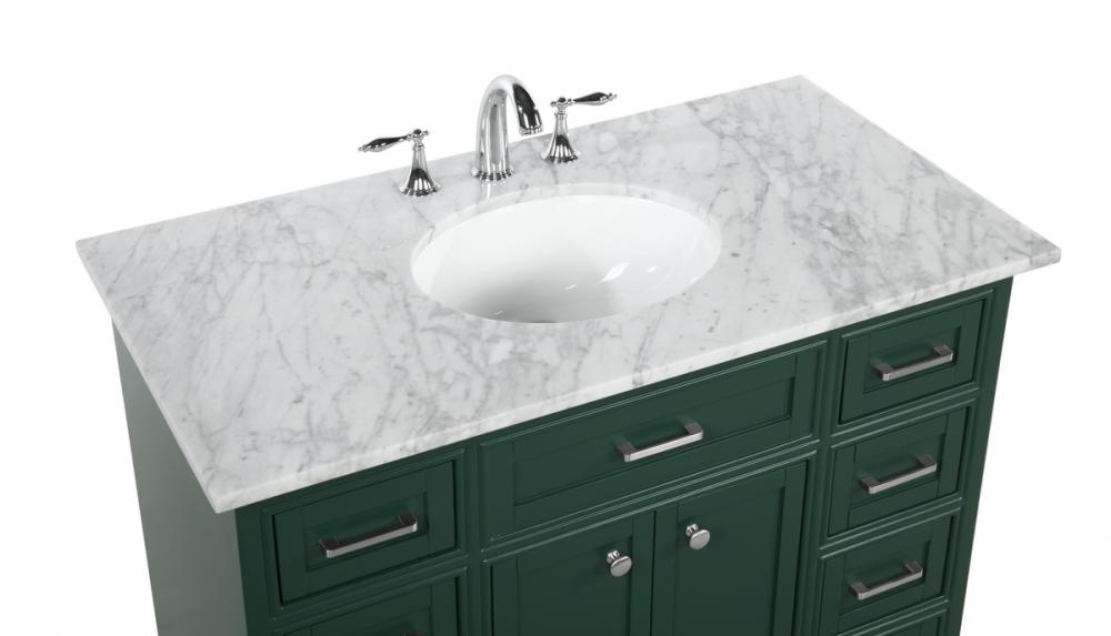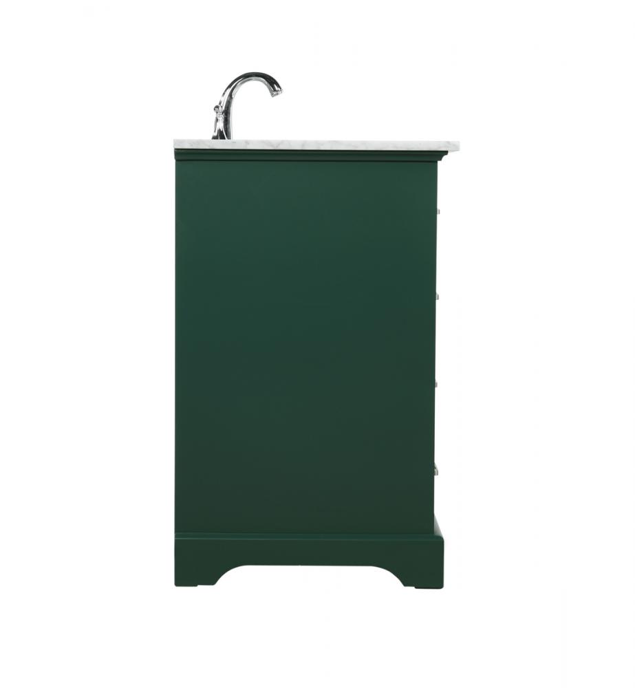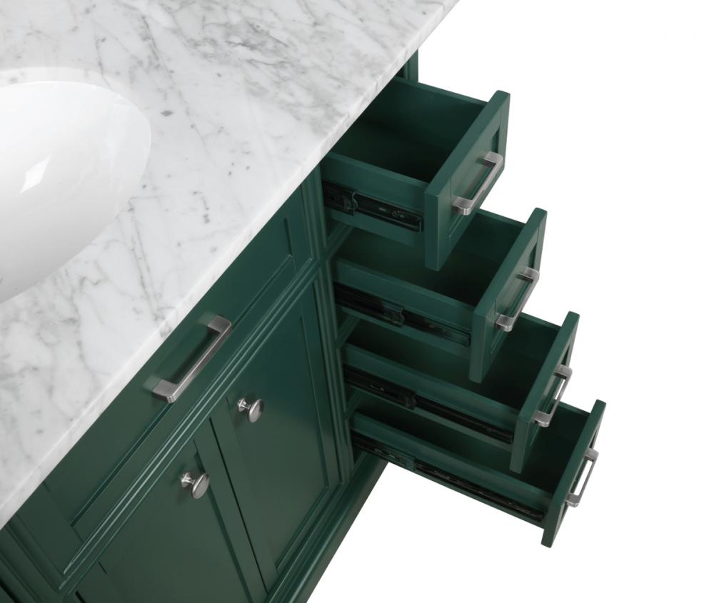 Clean lines and classic form can truly add a fresh look to your bathroom or powder room. This vanity, complemented by round hardware, will surely charm you with its confident style and subtle charisma. This vanity can store all of your bathroom toiletries, from extra towels to make up essentials. The vanity is crowned with carrara white marble and includes a porcelain undermount sink--adding both function and form that will truly amaze.