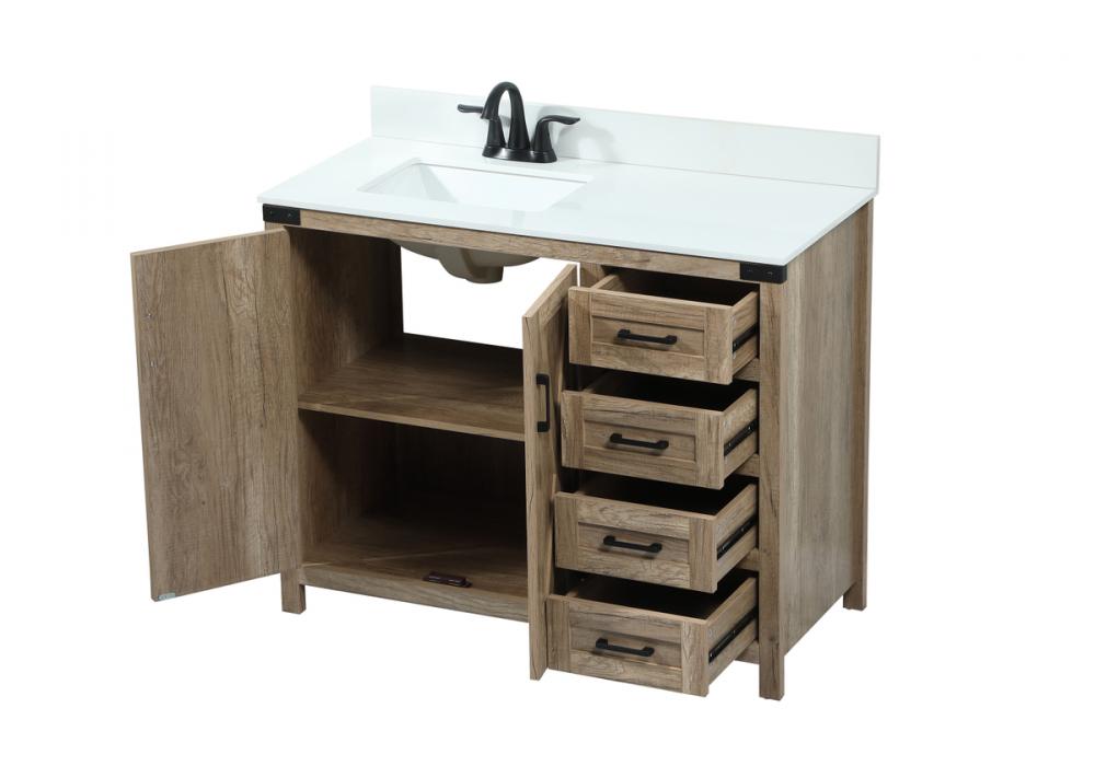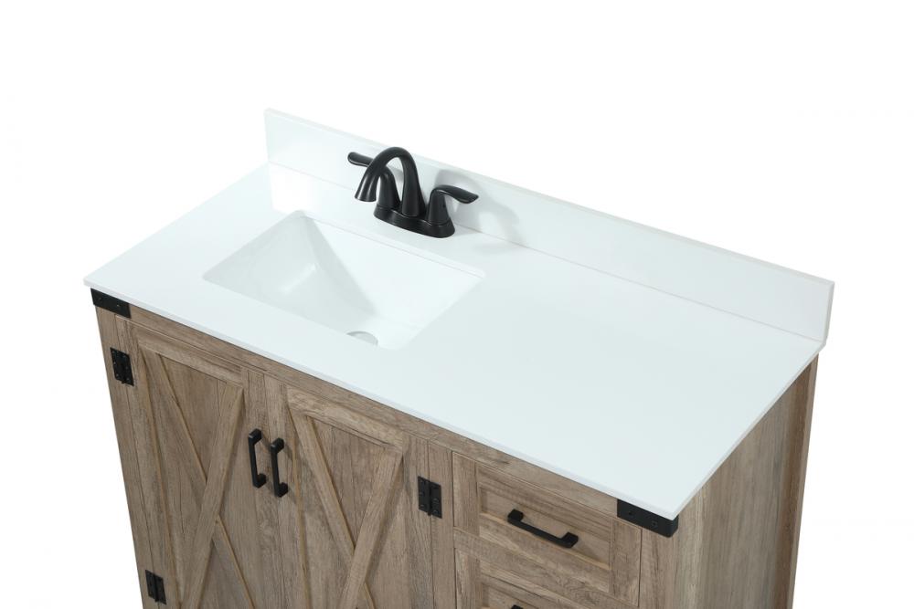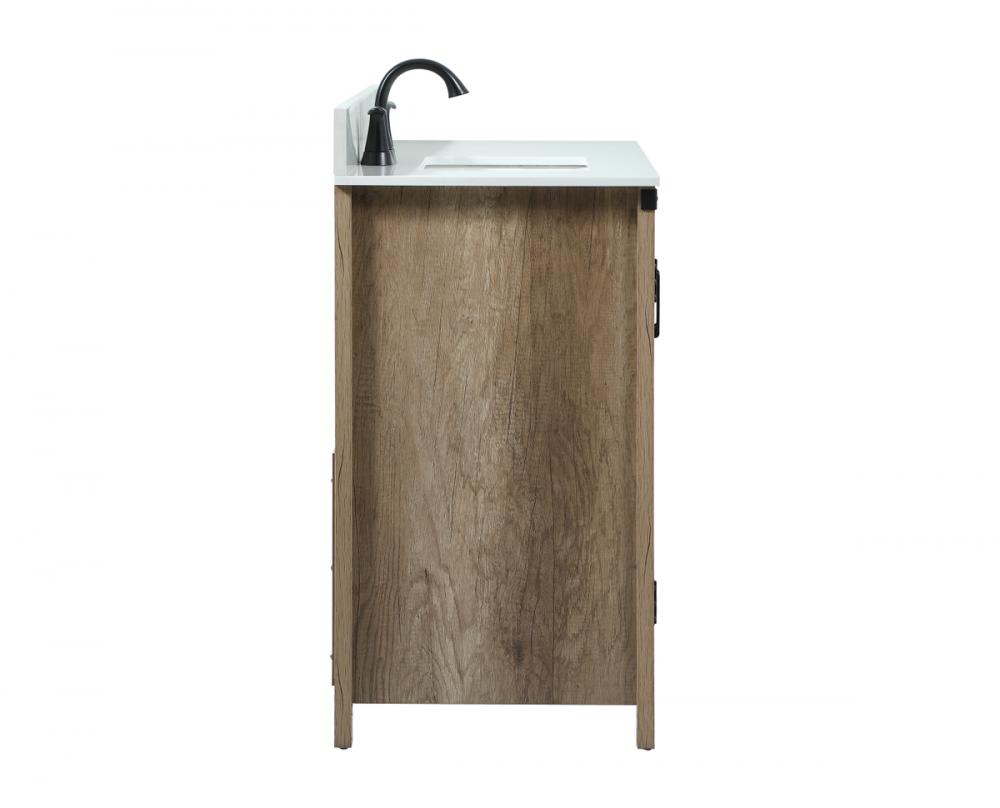 Reminiscent of barn doors, the two door cabinet and four drawers adds both stylistic charm and function with its plethora of storage options for all your bathroom essentials. Whether for your bathroom or the guests', everyone will marvel at its classic look for traditional and farmhouse aesthetics. A slab of engineered marble rounds out the piece up top, as well as the porcelain under mount sink and predrilled faucet holes. This vanity arrives fully assembled. Comes with a matching backsplash to complete the look and protects your wall.