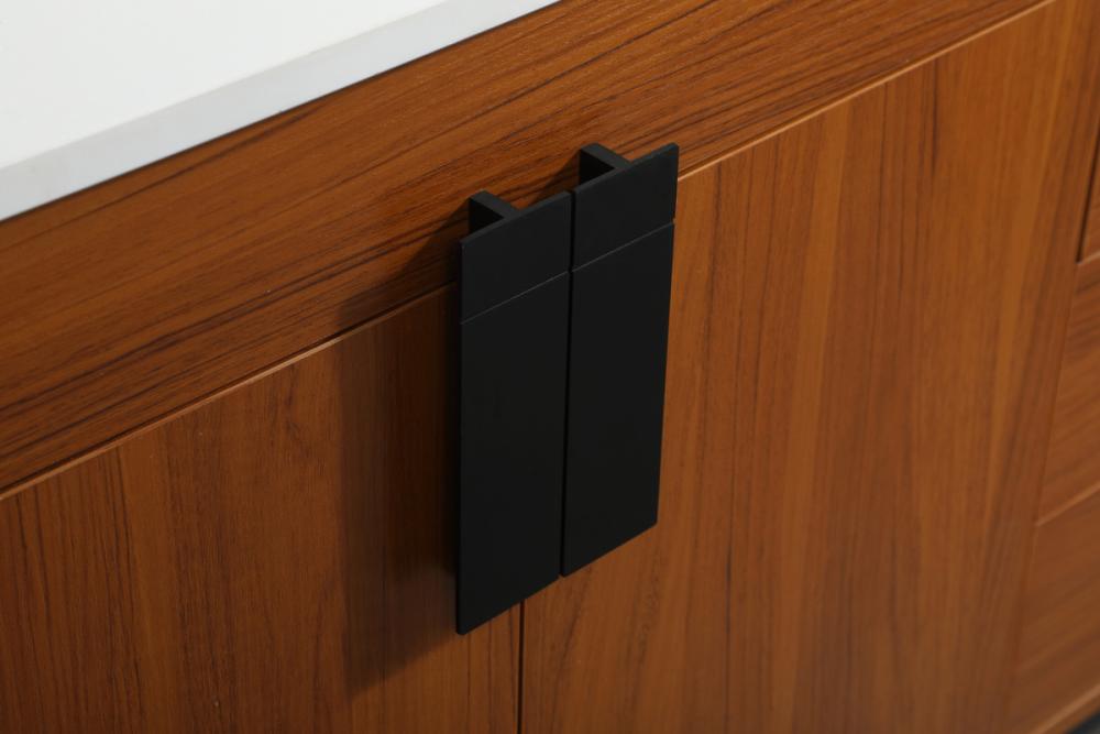 Oversized modern handles accentuates the smooth mdf wood base