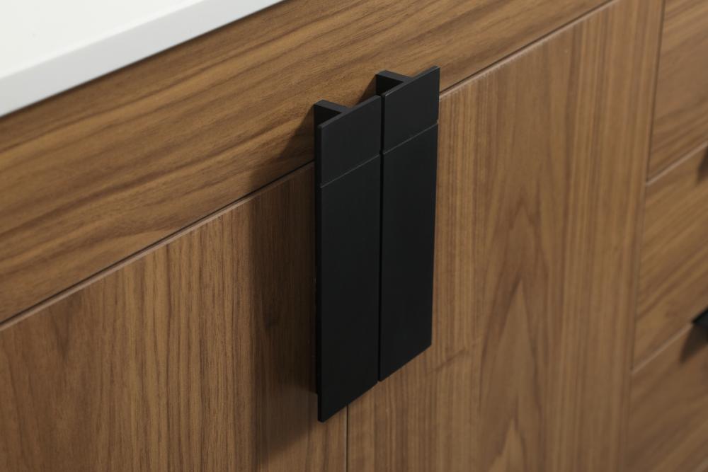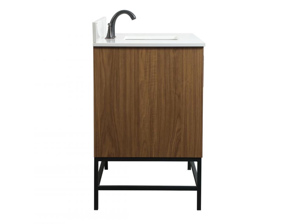 This vanity is a sleek-looking piece of bathroom furniture that is easy to incorporate into your design scheme. The cabinet features a smooth door panel with an oversized steel handle and soft close hinges provide ample room for accessories. Constructed of engineered wood, the powder-coated metal rod legs are an urban industrial look that we love. Minor assembly of the metal legs needed to get this vanity up and running. Comes with a matching backsplash to complete the look and protects your wall.