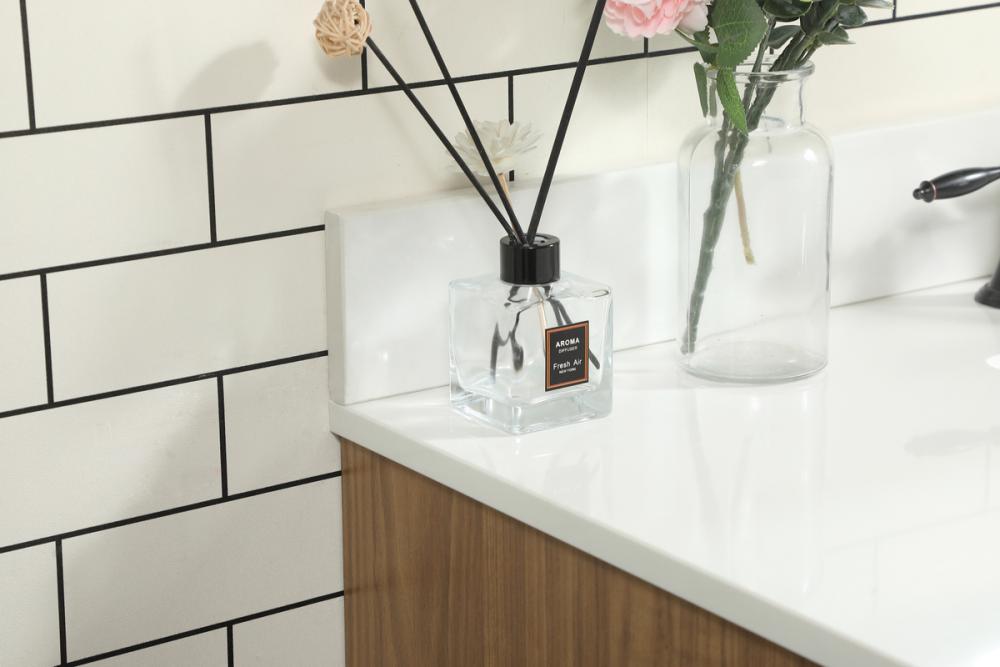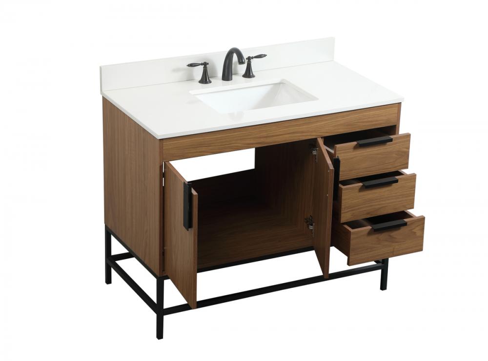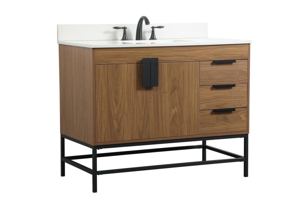 42 inch Single bathroom vanity in walnut brown with backsplash