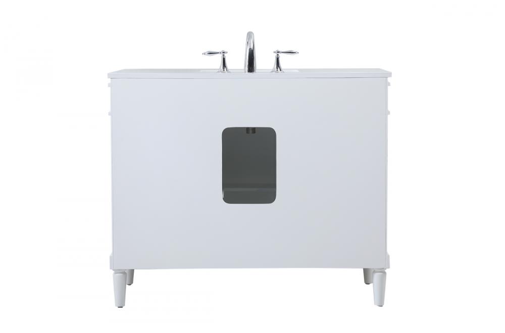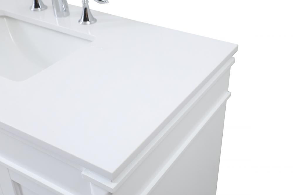 Crafted with durable engineered marble top in ivory white finish and vanity base is hand painted