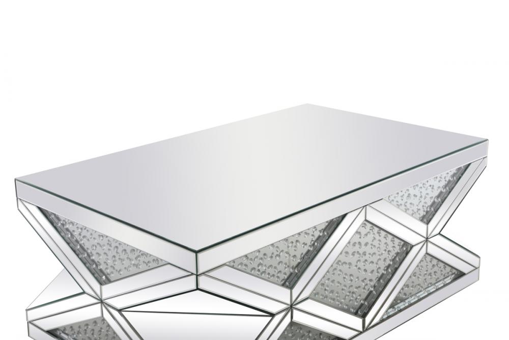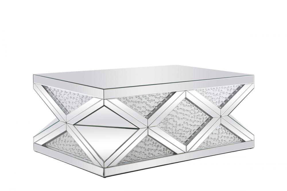Glamourize your home and let your rooms sparkle with this coffee table exuding utmost elegance and modernity. The crisscrossing pattern creates an array of triangular and diamond shapes that has sparkling crystals embellished within clear class. The accent borders that creates the crisscrossing and top panels are all enveloped in clear beveled mirror panels that adds even more prestigious luxe. Host a dinner party and watch as your guests gather around this sparkling table with their glasses of wine and hors d’oeuvre, adorn it with fashionable magazines and important journals, inspire your guests with photography and textiles books—to put it simply, let this sparkling coffee table inspire conversations between you and your guests.
