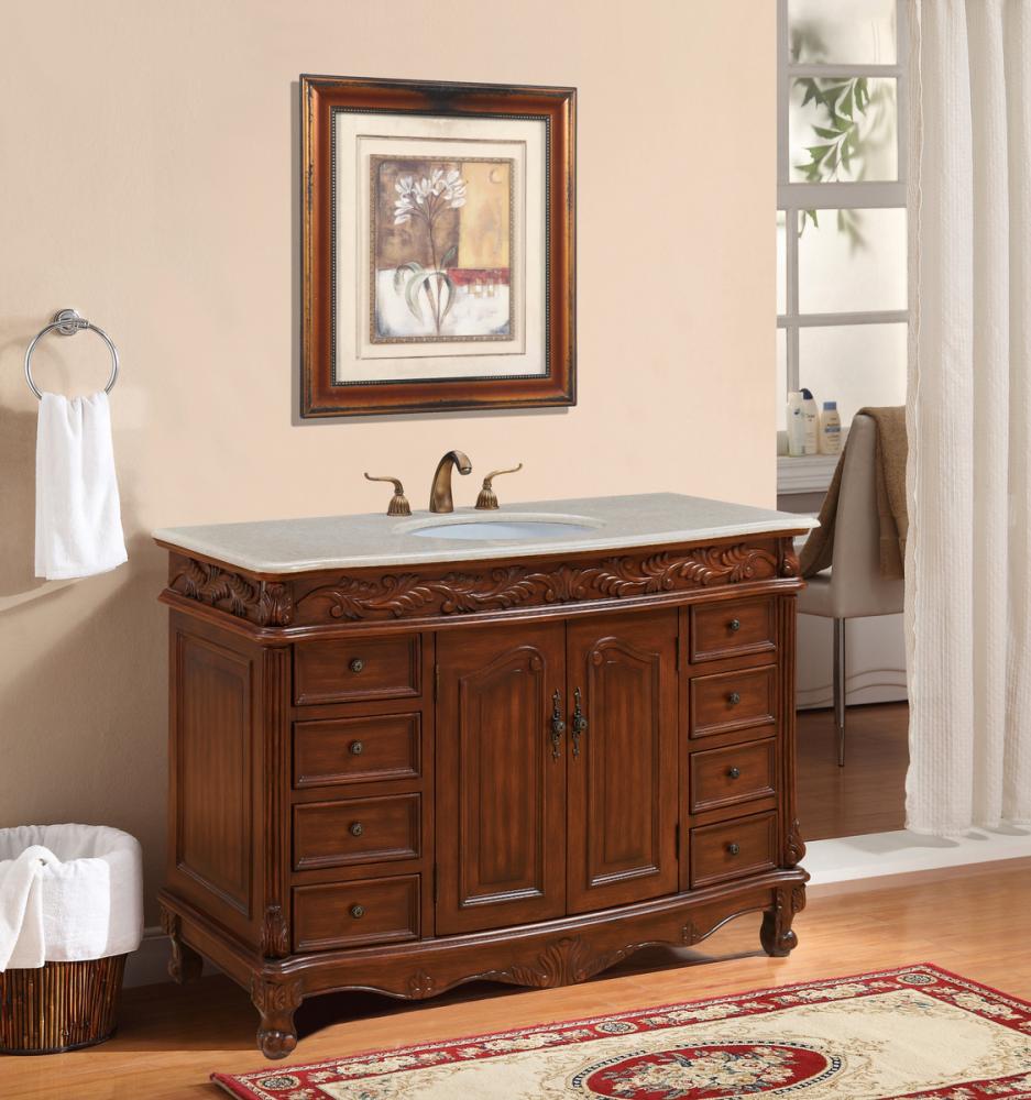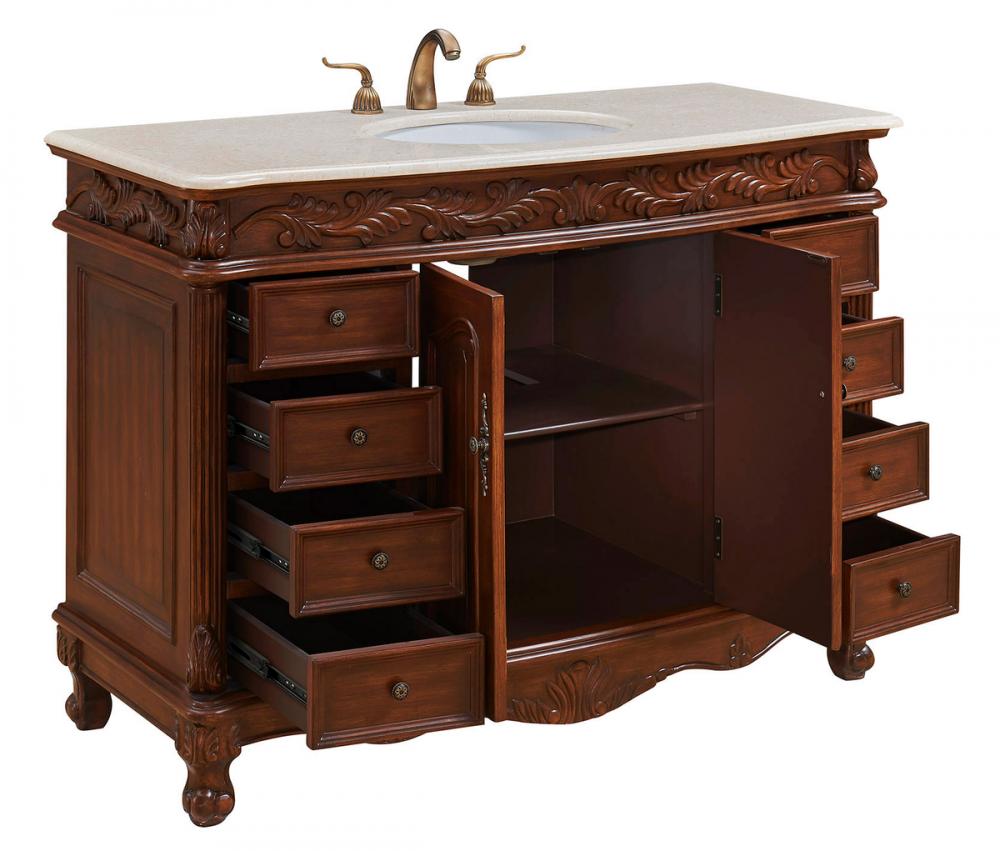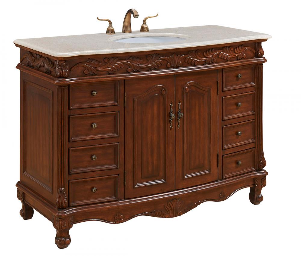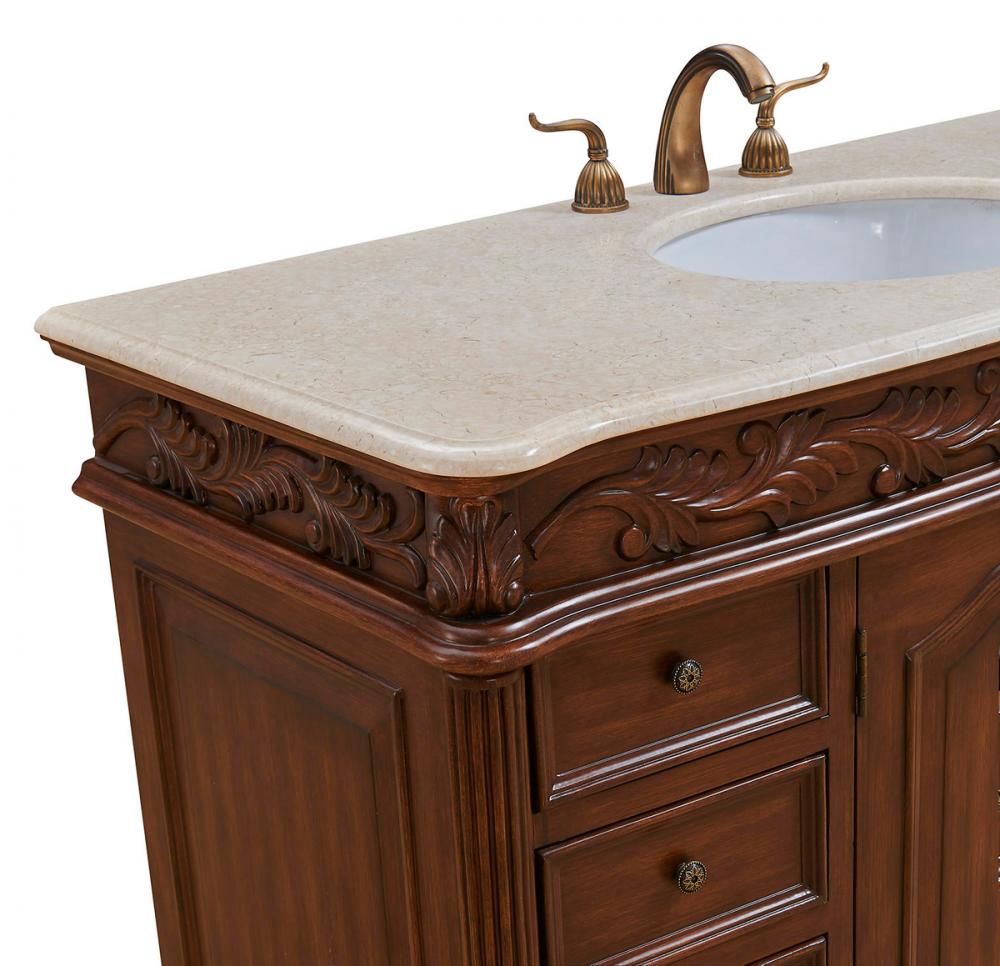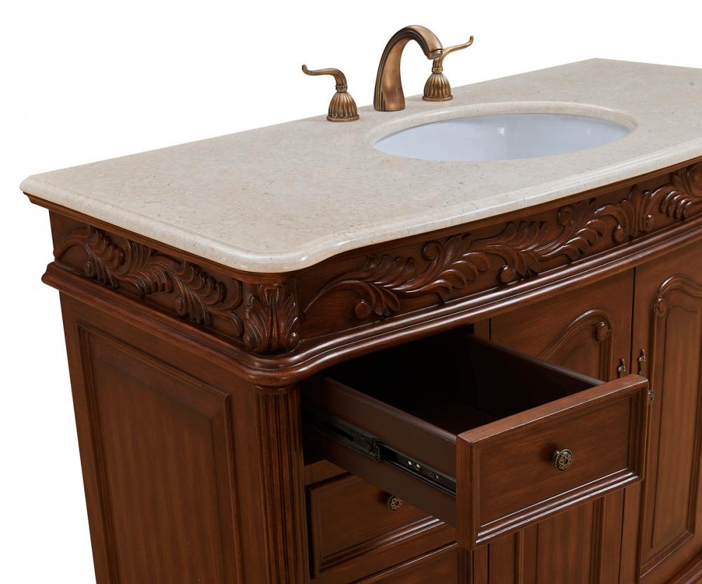 48 inch Single Bathroom vanity in Teak Color with ivory white engineered marble