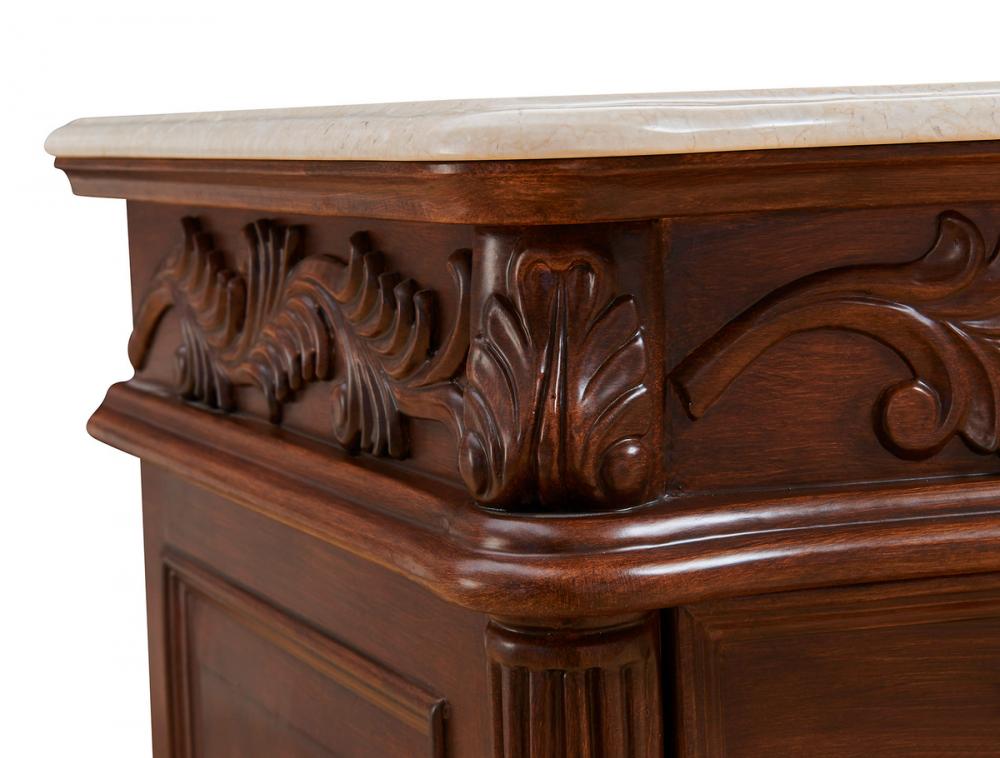Our “Bordeaux” line of exquisite vanities includes this handpainted teak finish console with an authentic cream marble countertop, perfect to adorn your master bathroom or powder room!
