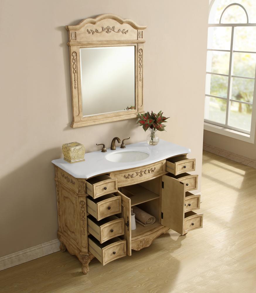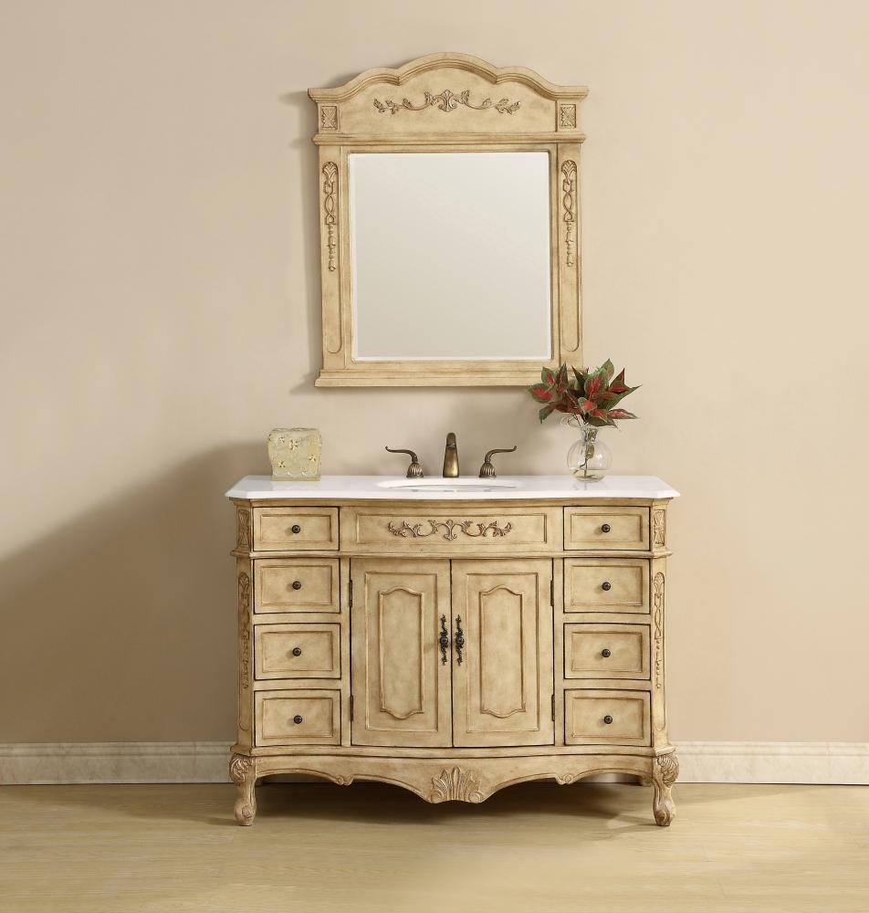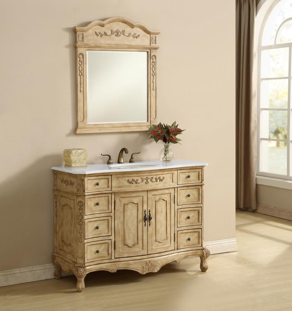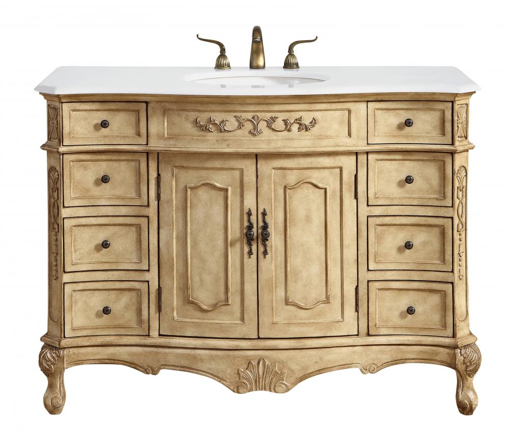 48 inch Single Bathroom vanity in Antique Beige with ivory white engineered marble
