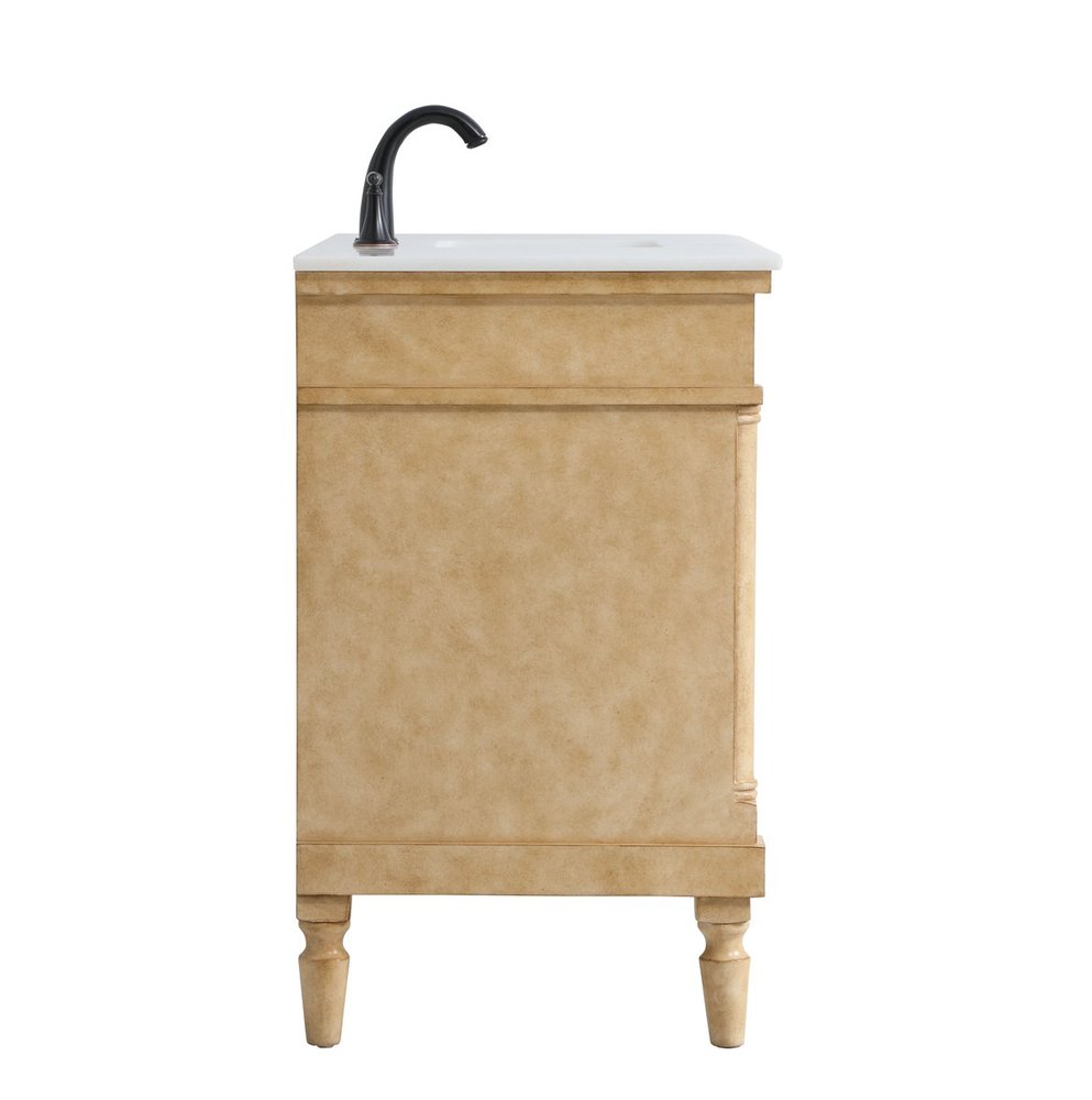 Distressed antique beige finish with a luxurious white with occasional coffee color vein marble countertop