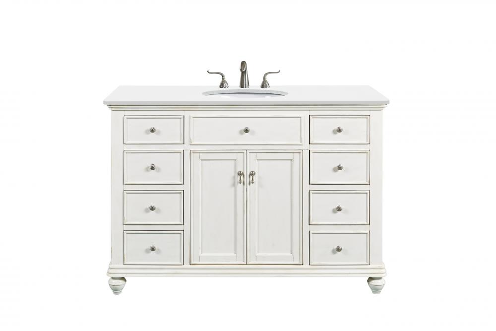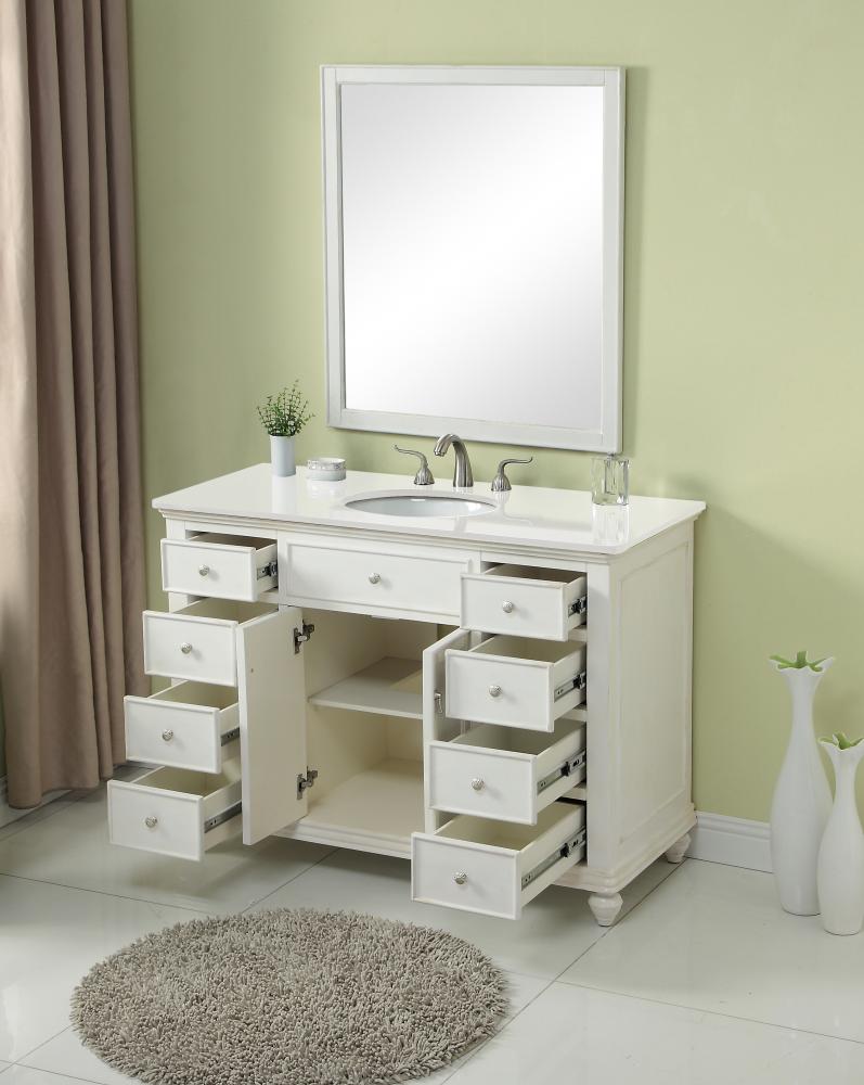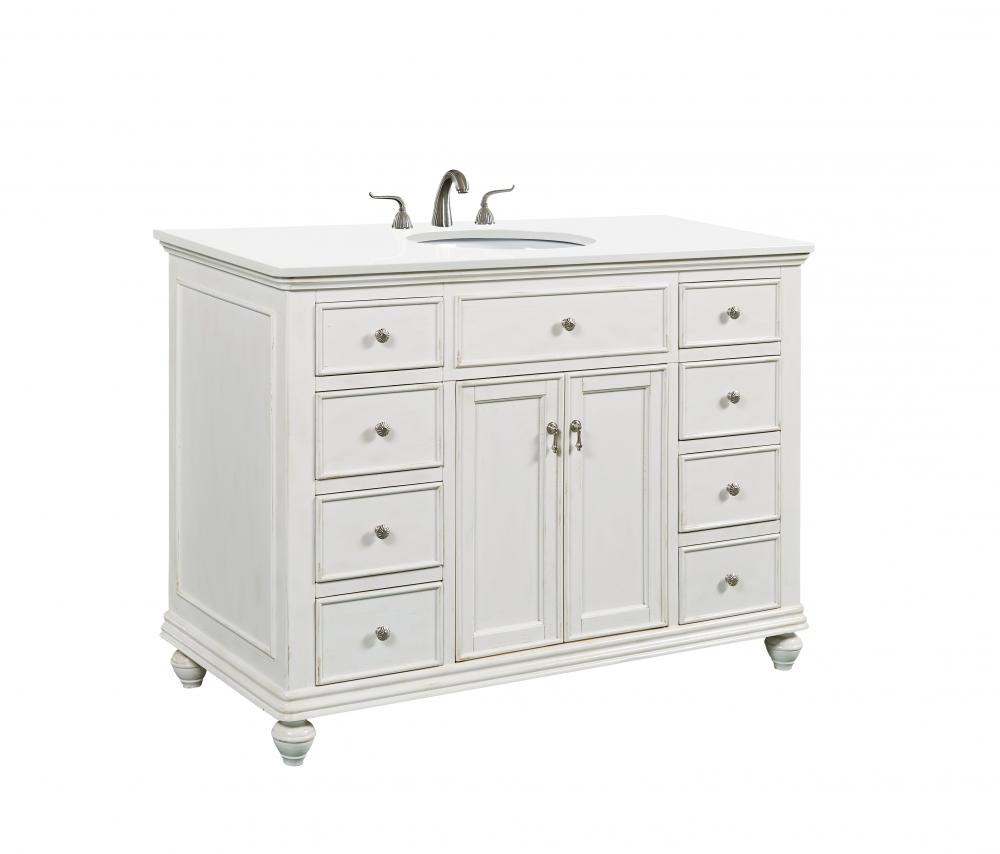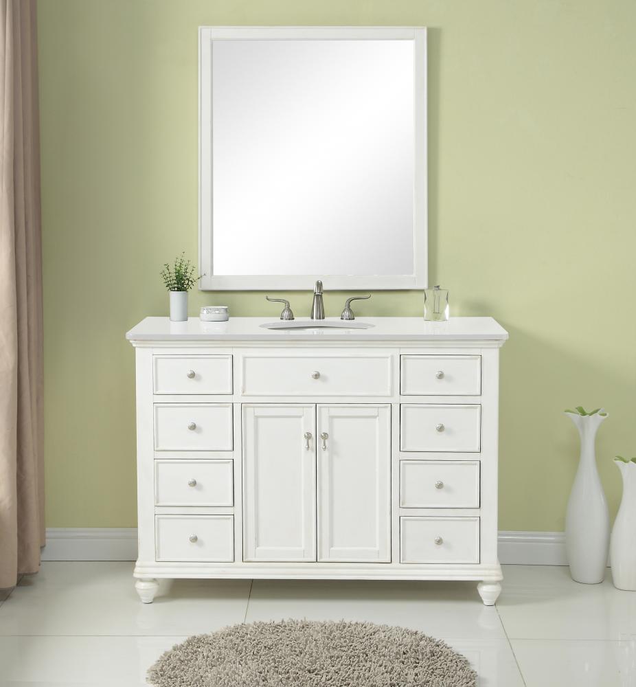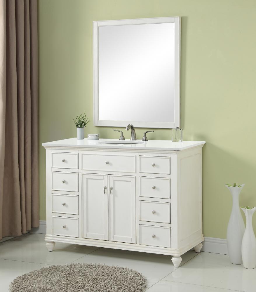 48 inch Single Bathroom vanity in Antique White with ivory white engineered marble