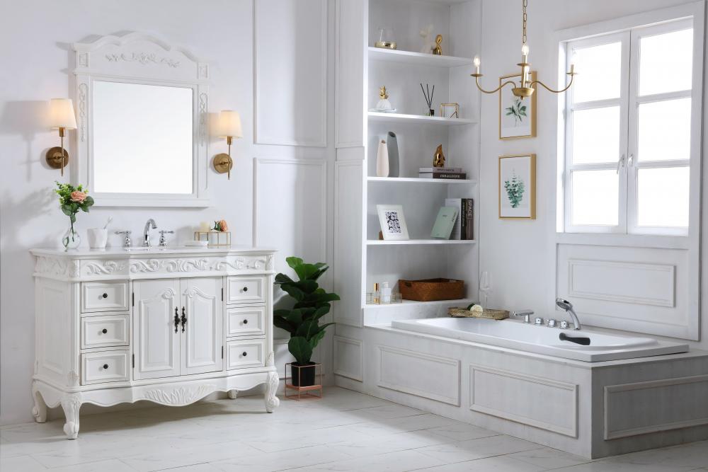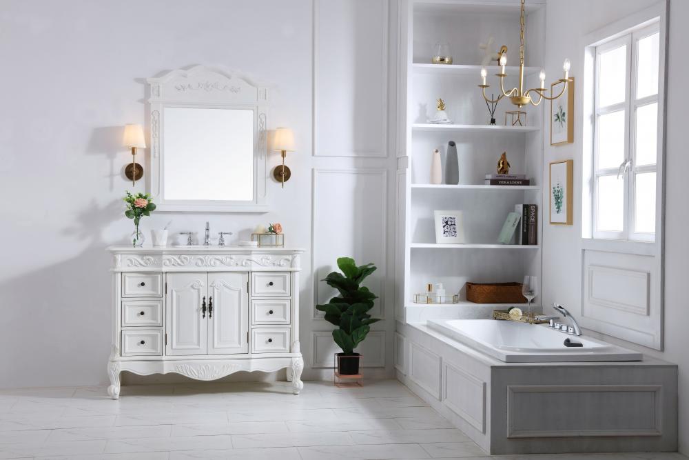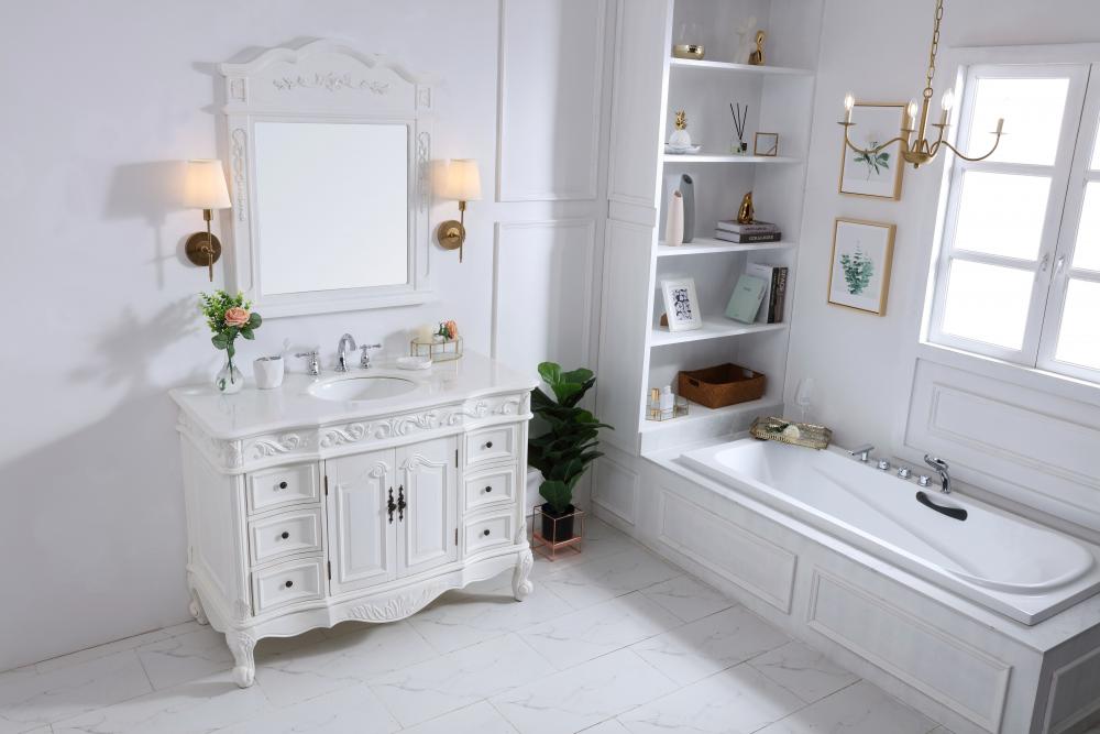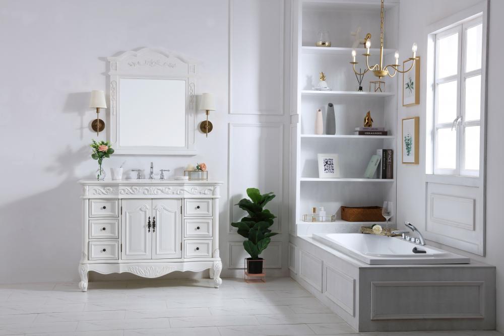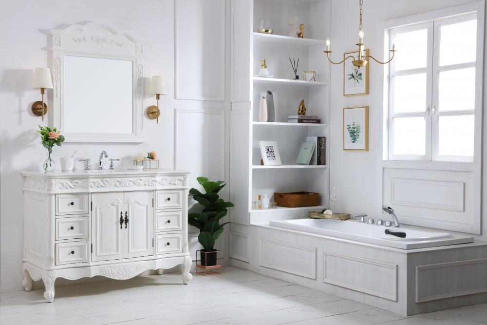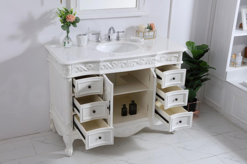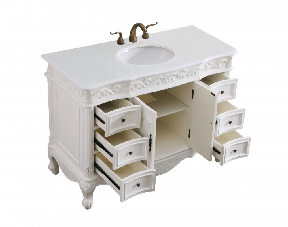 48 inch Single Bathroom vanity in antique white with ivory white engineered marble