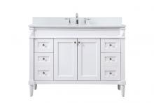 Crafted with durable engineered marble top in ivory white finish and vanity base is hand painted