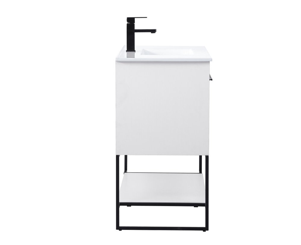 Live in modern comfort with this 48" concrete grey finish vanity. Dressed in a concrete grey and sleek black metal hardware, its contemporary style will have your bathroom or powder room elevated in industrial sophistication. The open shelf at the base and 3 doors reveal ample storage space for your bathroom essentials and miscellany. Clean lines create its own visual interest, adding trendy looks to your already chic room.