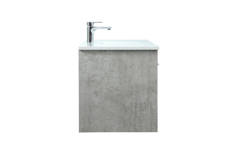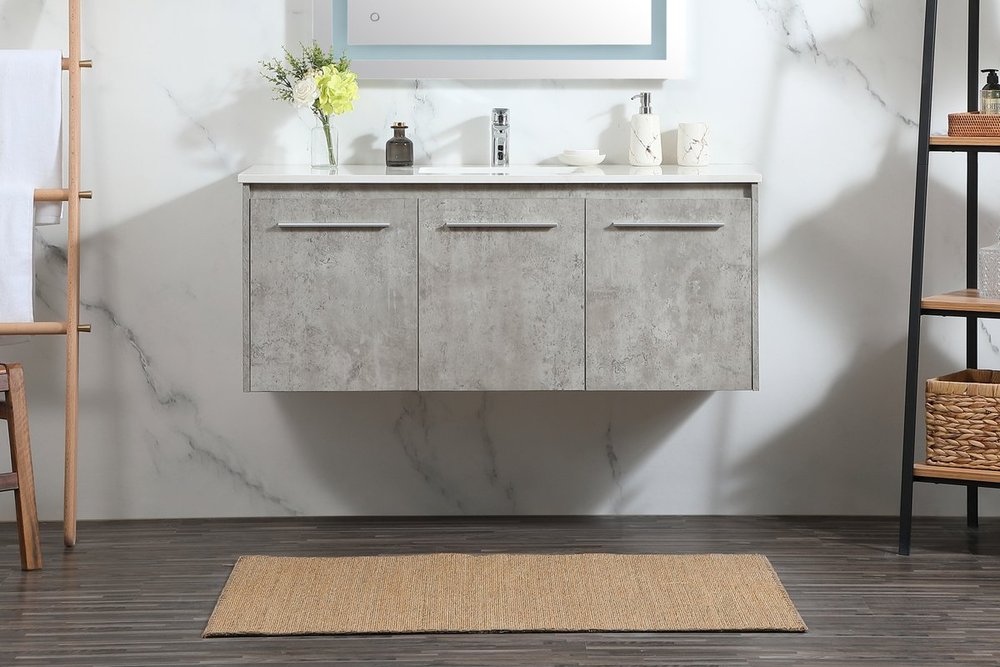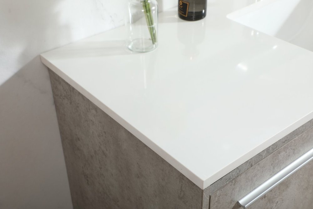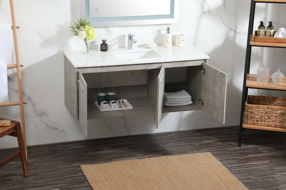 Save space and make your bathroom appear bigger with this floating vanity that comes in several finishes. Its minimal design will have you in awe, while its clean lines will leave your room feeling fresh and uncluttered. The Single cabinet opens with soft closing doors that allows for storage to place extra towels or various other essentials. Its low maintenance and durable engineered marble top will surely last through many washes.