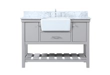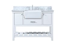 Comes with an apron porcelain sink and durable marble stone top in carrara white finish