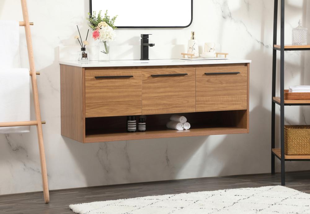 48 inch Single bathroom vanity in walnut brown with backsplash