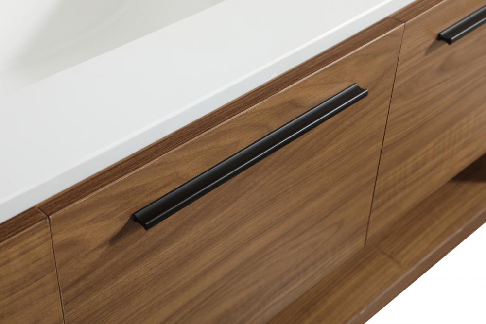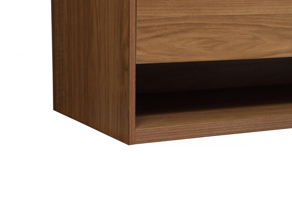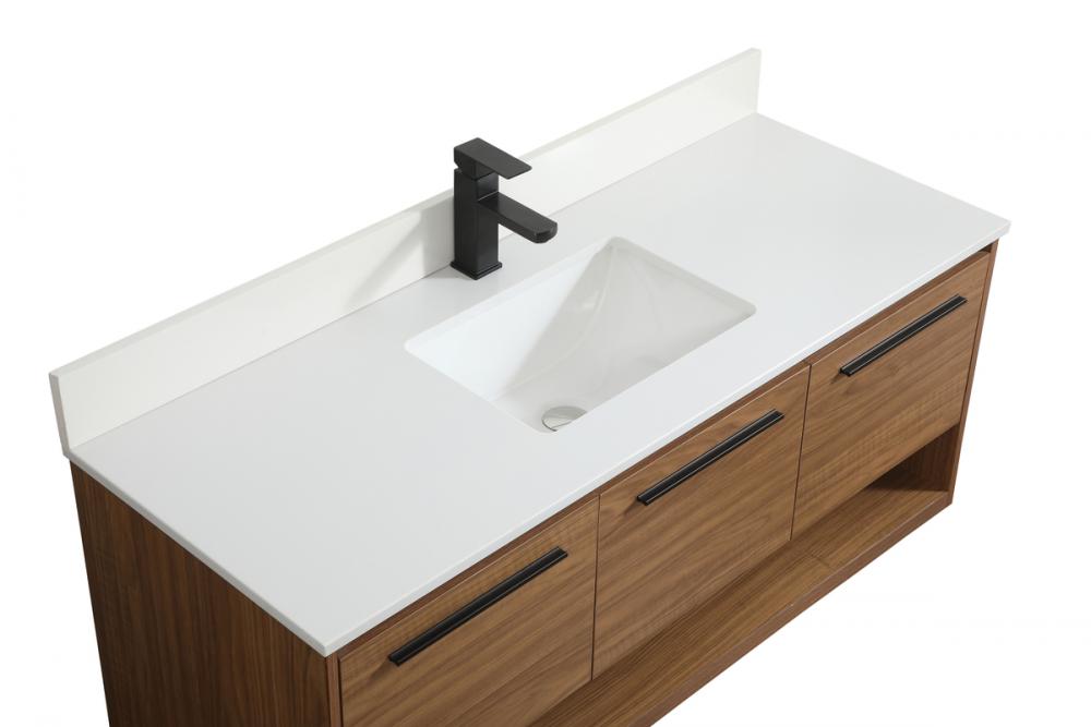 Save space and make your bathroom appear bigger with this floating vanity. Its minimal design will have you in awe, while its clean lines will leave your room feeling fresh and uncluttered. The Single u-drawer pulls out for storage while the open space below allows you to place extra towels or various other essentials. The ivory white engineered marble counter top with porcelain sink adds refined luxe while the aluminum barpull style handle adorn the vanity face. Comes with a matching backsplash to complete the look and protects your wall.