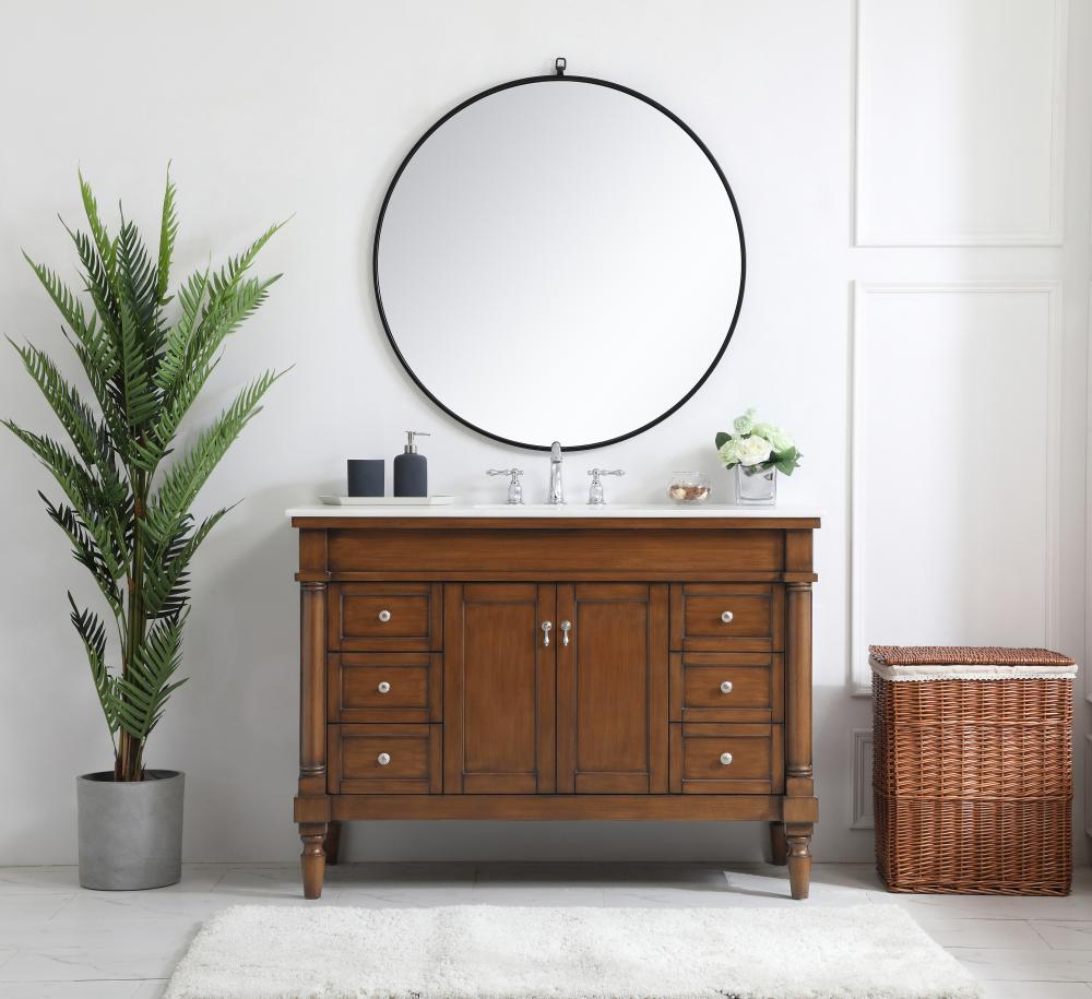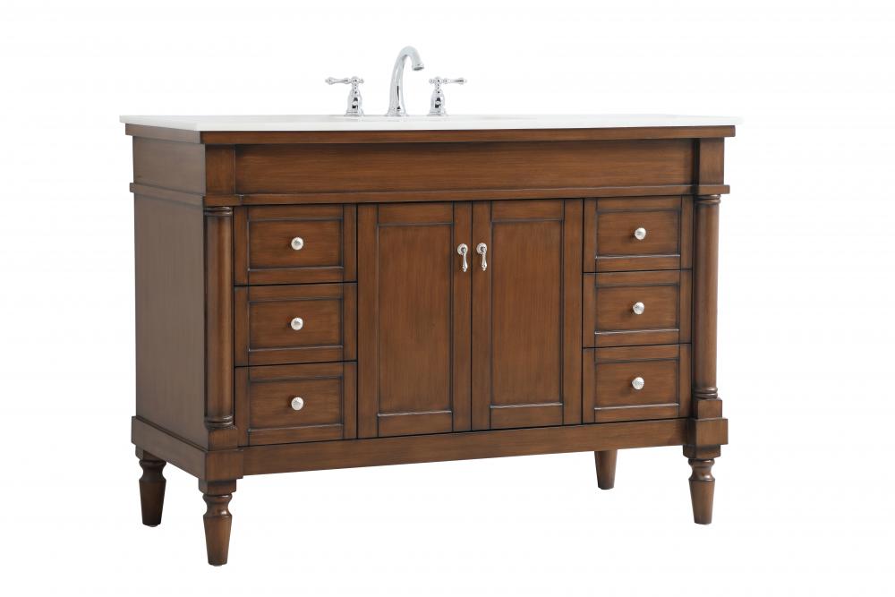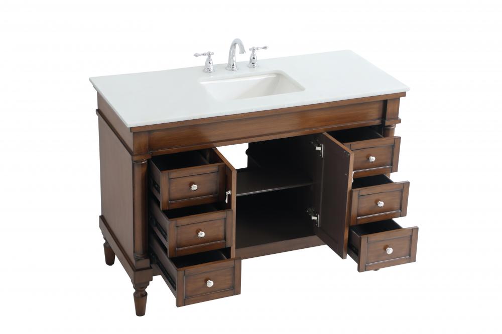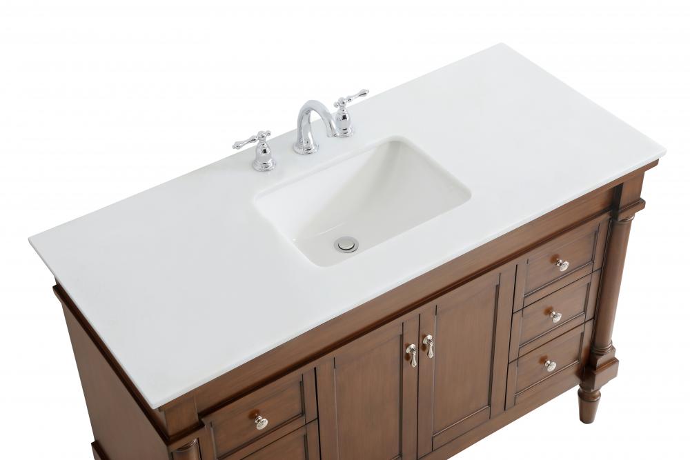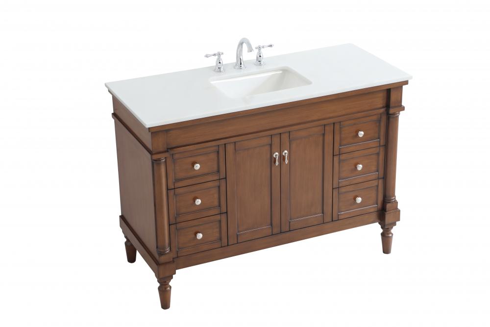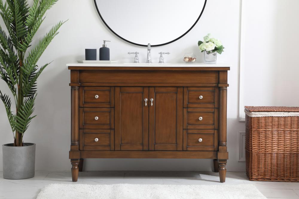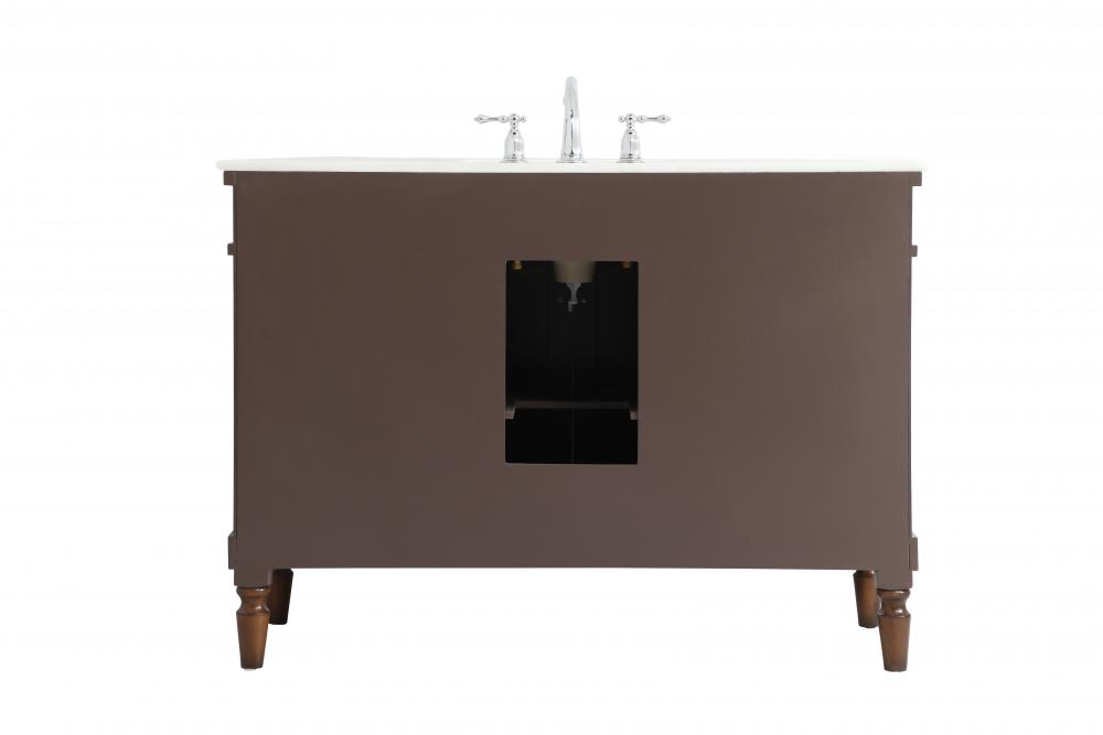 48 inch Single Bathroom vanity in Walnut with ivory white engineered marble