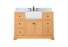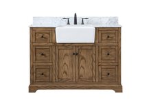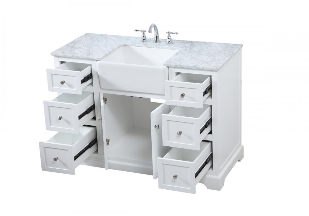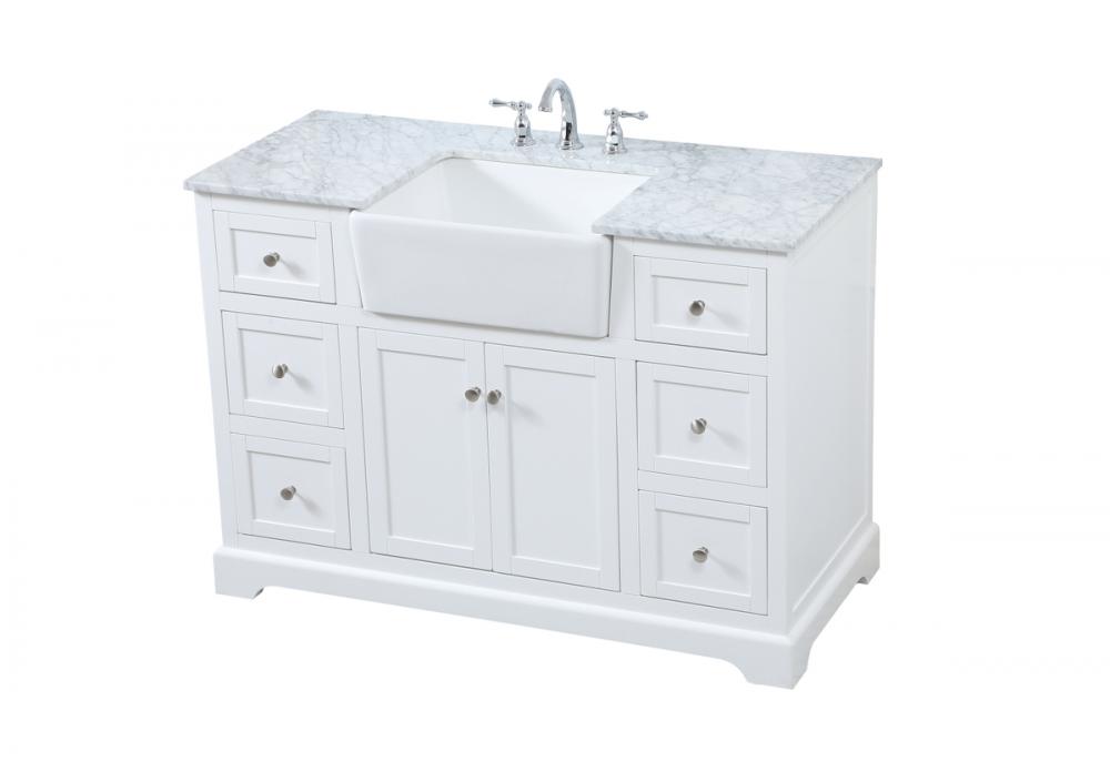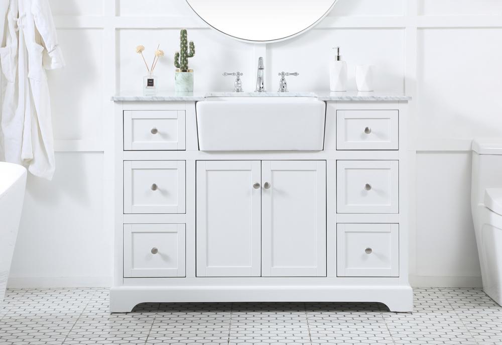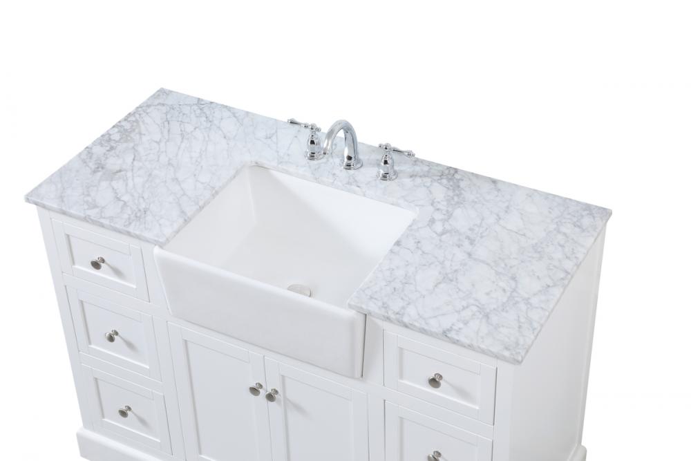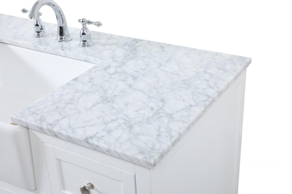 Comes with an apron porcelain sink and durable marble stone top in carrara white finish