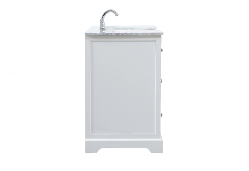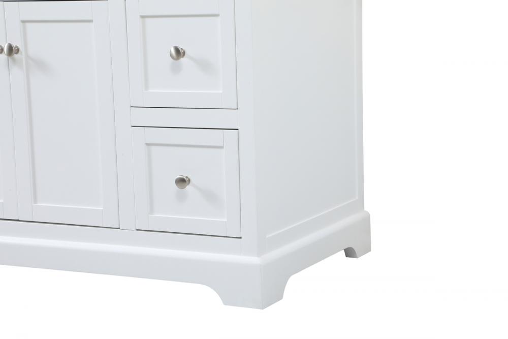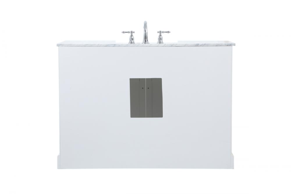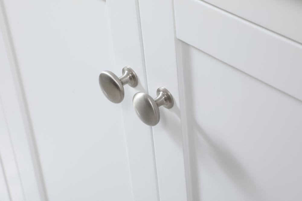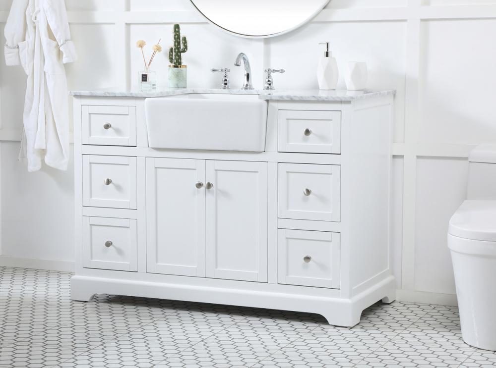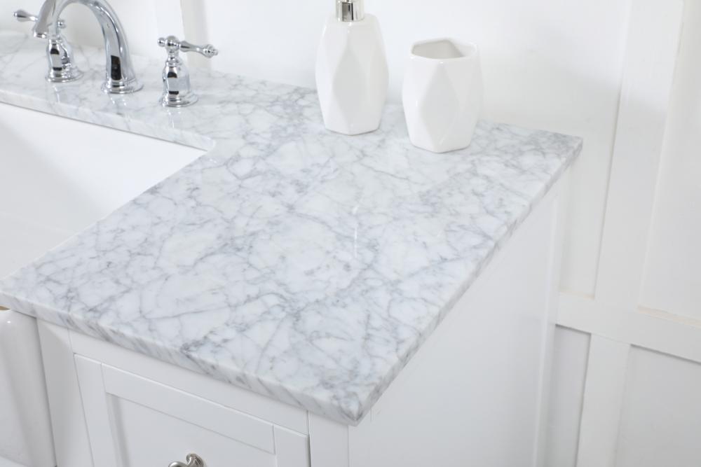 Make the most of your space with this farmhouse style bathroom vanity. Complements well with its beautiful finish, carrara white marble countertop, and the contemporary slender handle bar that sits on the functional drawers with soft closing mechanism, allowing you to store an assortment of bathroom essentials. The lower shelf makes it the perfect space to hold new towels for your guests. This stylish vanity ensures both form and function in your bathroom for you and your guests.