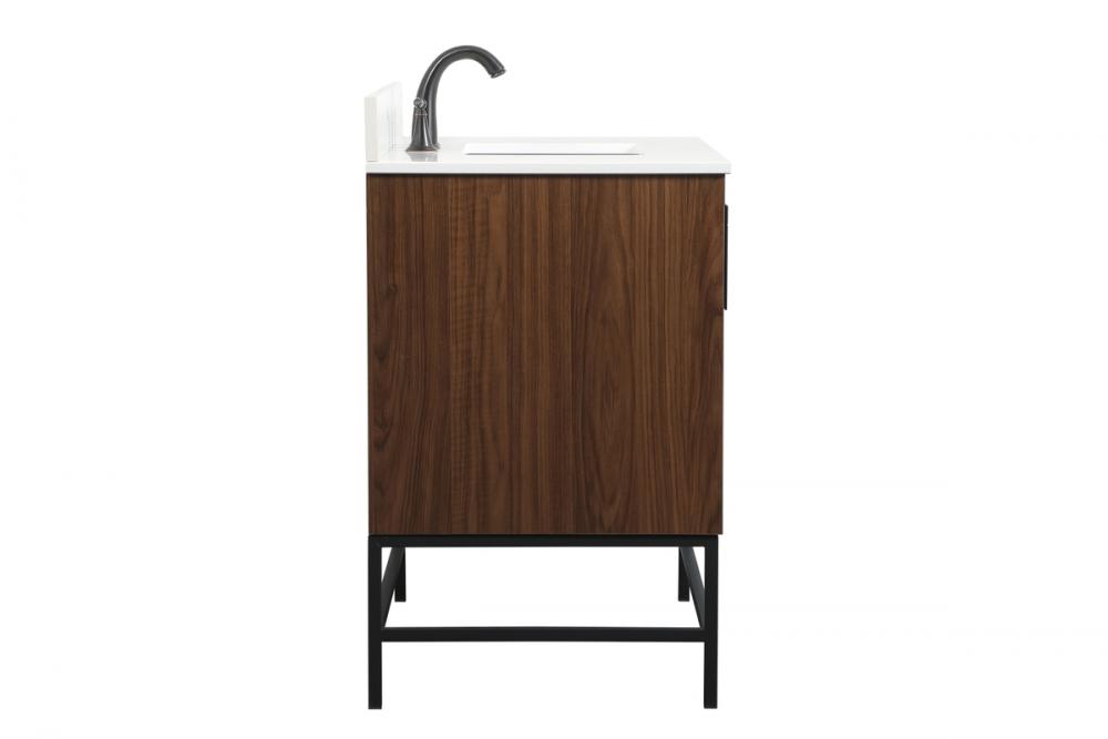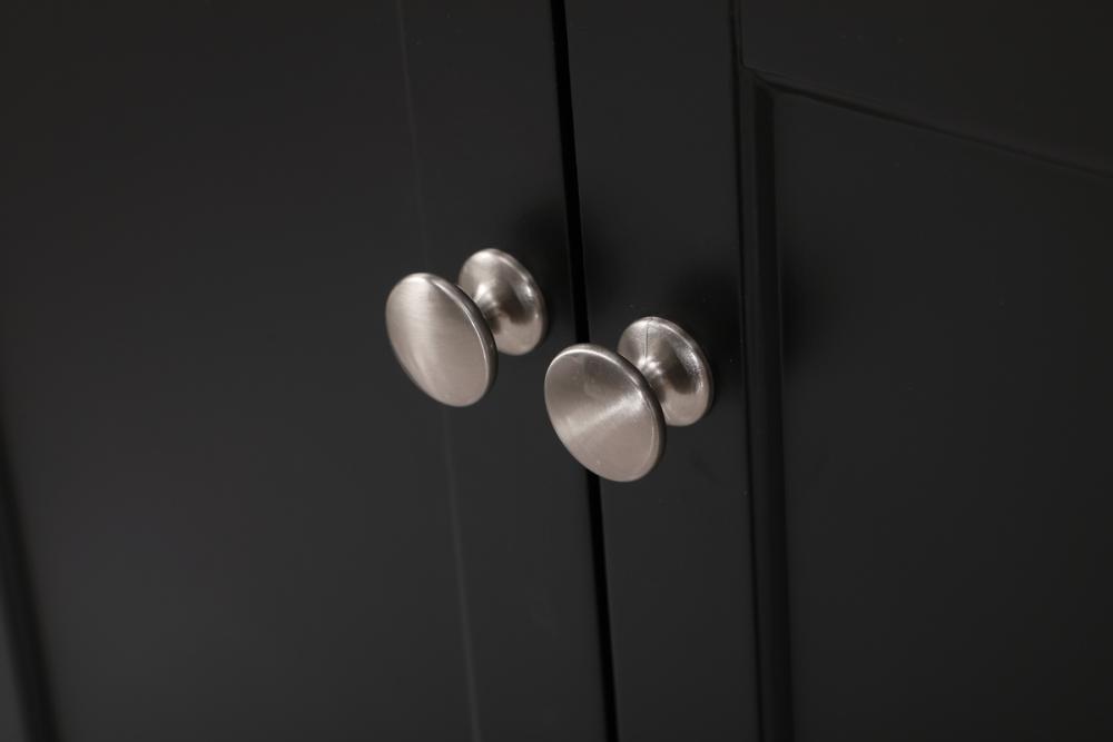 Make the most of your space with this traditional style bathroom vanity. Its traditional style is able to complement many aesthetics, natural marble countertop, and the round brushed nickel knobs that sits above the soft closing doors, allowing you to store an assortment of bathroom essentials. The lower shelf makes it the perfect space to hold new towels for your guests. This compact vanity ensures both form and function in your bathroom or powder room for you and your guests.
