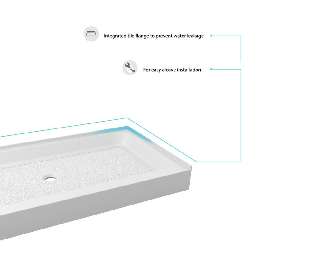 Upgrade your bathroom with our acrylic single threshold alcove shower base in glossy white and enjoy the perfect blend of style, safety, and quality for years to come! This rectangular masterpiece not only adds a touch of contemporary luxury to your space but also ensures top-notch safety and durability. Available in multiple sizes and three drain configurations (left, right, and center).