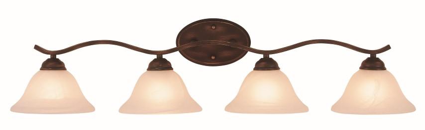 The Hollyslope 35" Vanity Bar is a decorative way to bring light into your bath or powder room. This Traditional fixture will complement a wide variety of decor and is easy to coordinate with your existing pieces. The Hollyslope 35" Vanity Bar features a horizontal curved arm that is attached to a centered oval wall plate, and holds four Marbleized Glass bell-shape shades. This fixture can be mounted with bulb facing up or down.