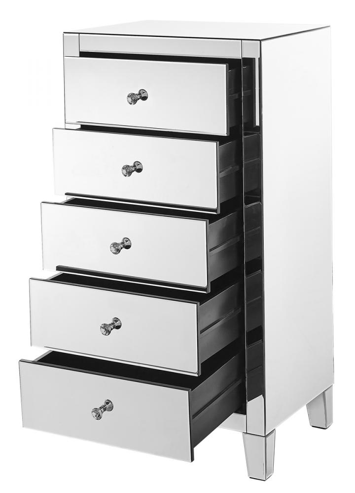5 Drawer Chest 24 in x 18 in x 45 in.in clear mirror