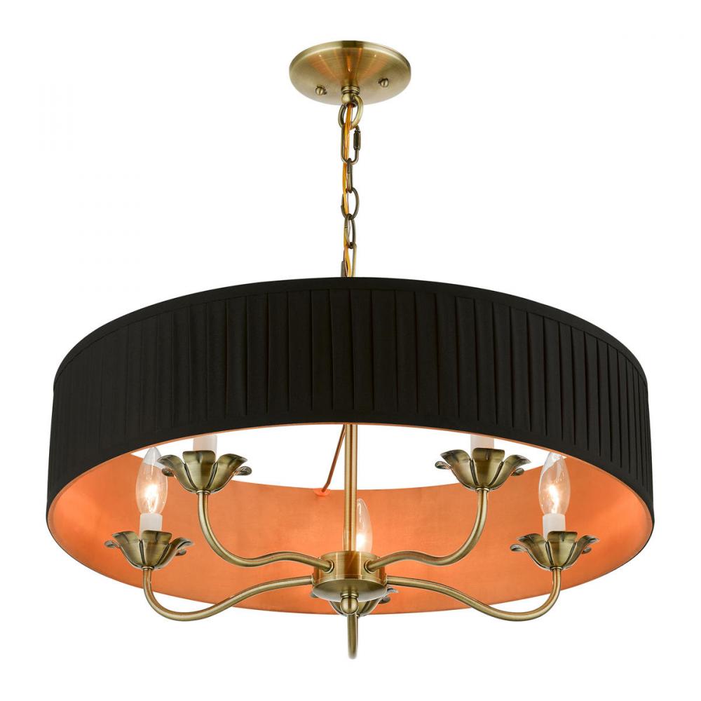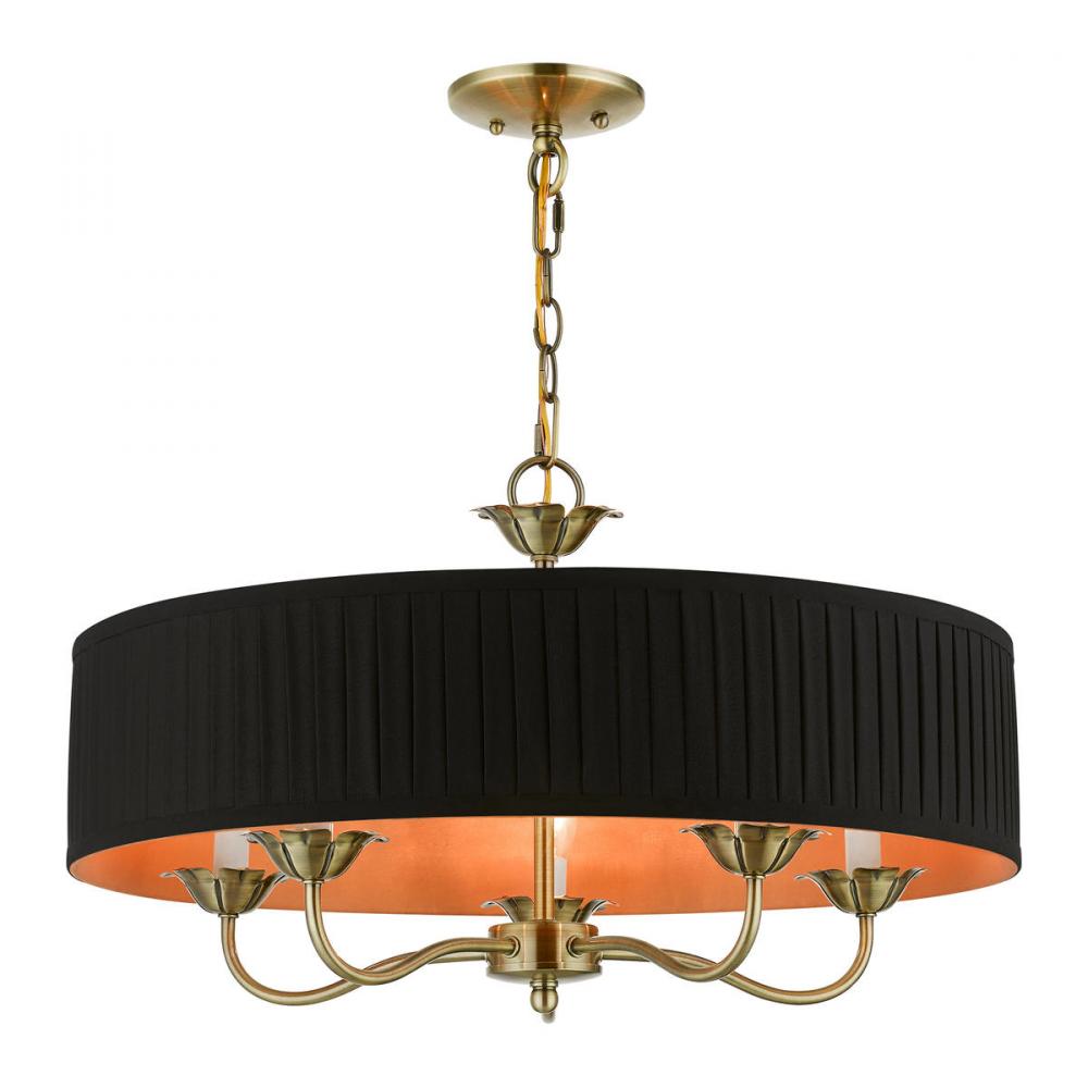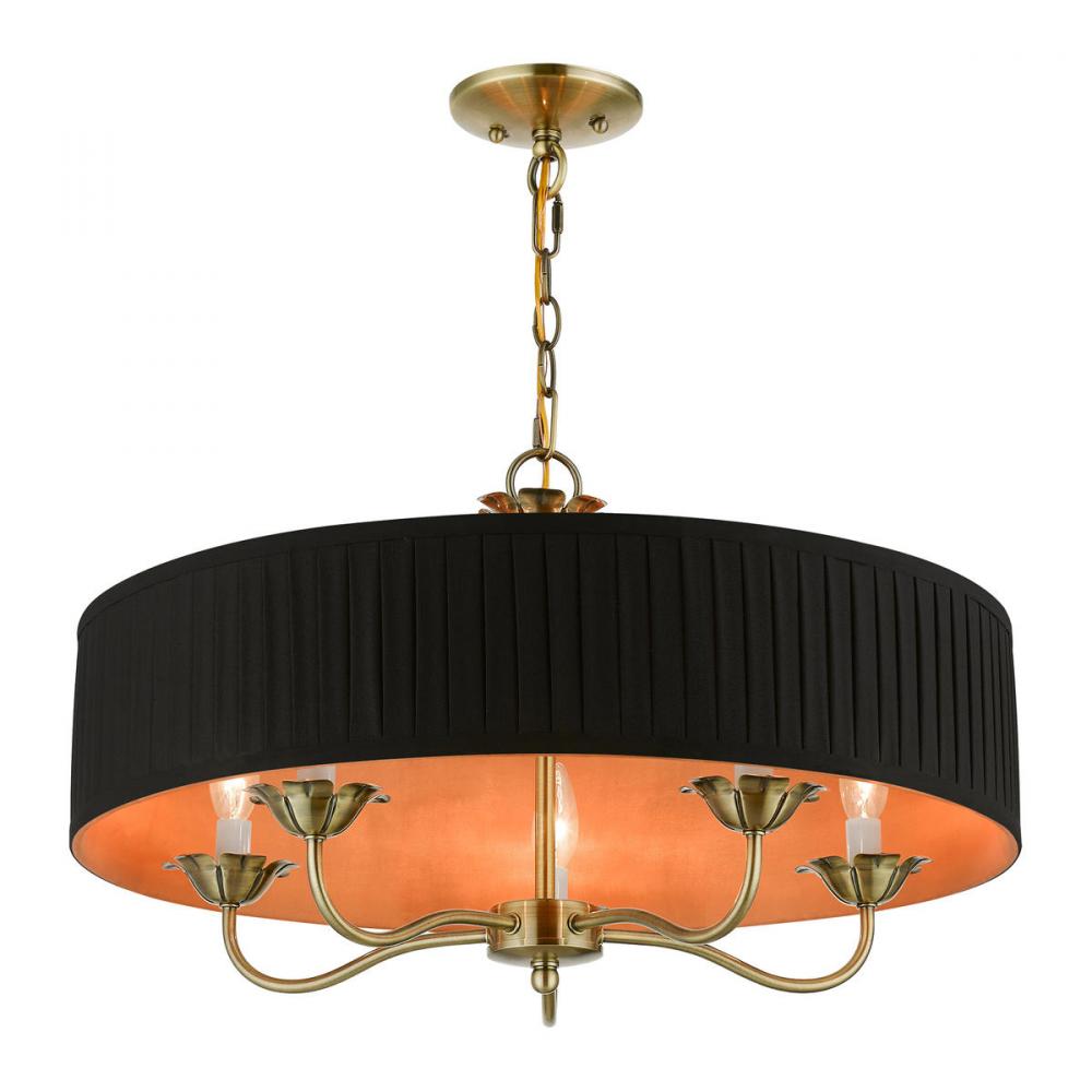 5 Light Antique Brass Pendant Chandelier