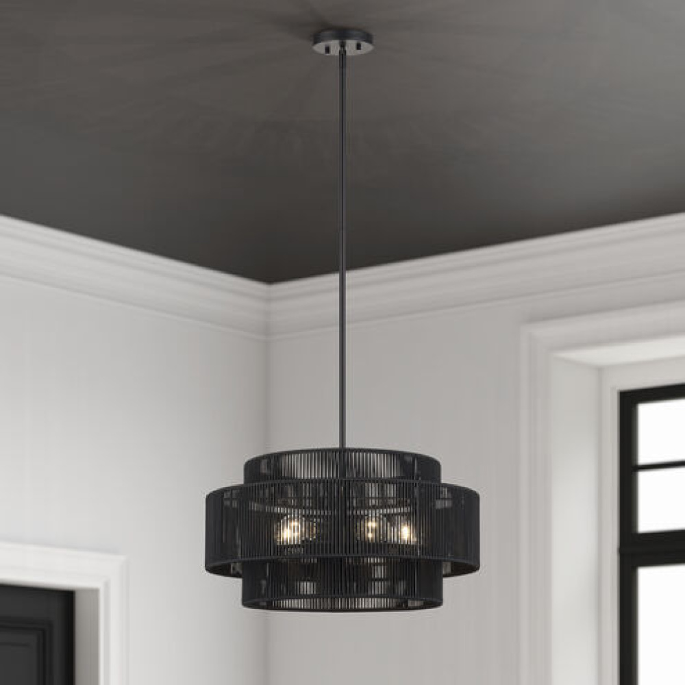 What a joy to come home to the calming, balanced and stylish Acordia lighting collection, with its semi-transparent texture and dynamic illumination! This midcentury modern lineup of elegant ceiling and wall lights features minimal metal frames with dimensional drum-shaped, tiered shades – masterfully handwoven with silky-smooth, highly-durable polyester rope, finished in noble, natural and atmospheric colors.