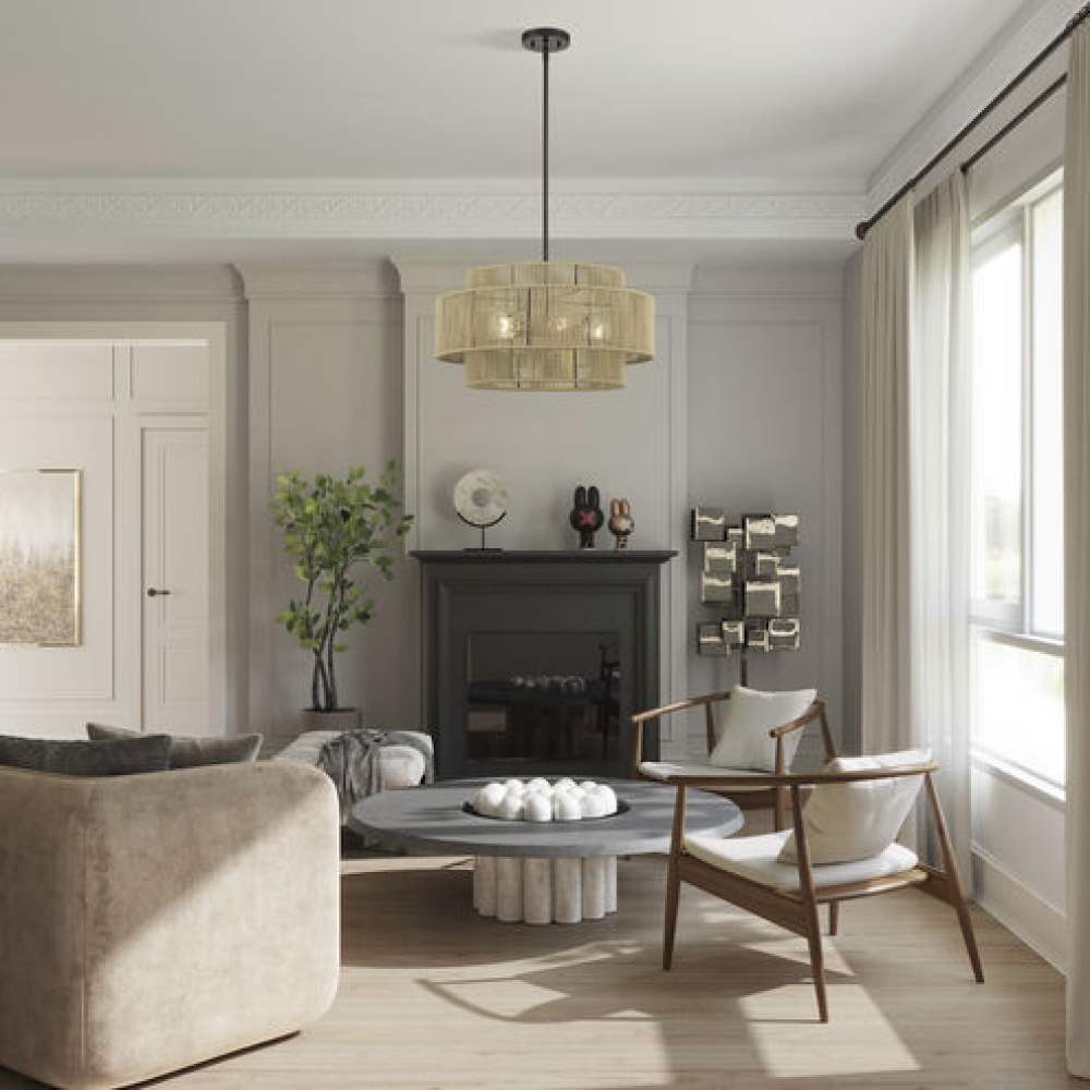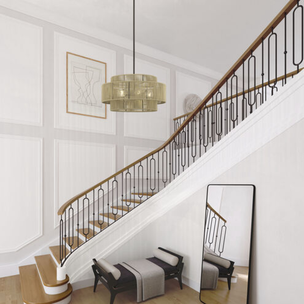 What a joy to come home to the calming, balanced and stylish Acordia lighting collection, with its semi-transparent texture and dynamic illumination! This midcentury modern lineup of elegant ceiling and wall lights features minimal metal frames with dimensional drum-shaped, tiered shades – masterfully handwoven with silky-smooth, highly-durable polyester rope, finished in noble, natural and atmospheric colors.