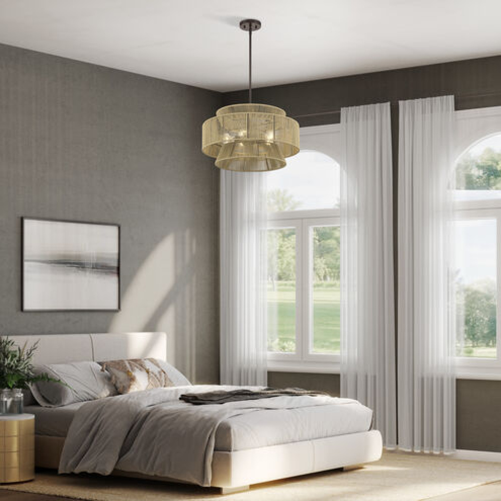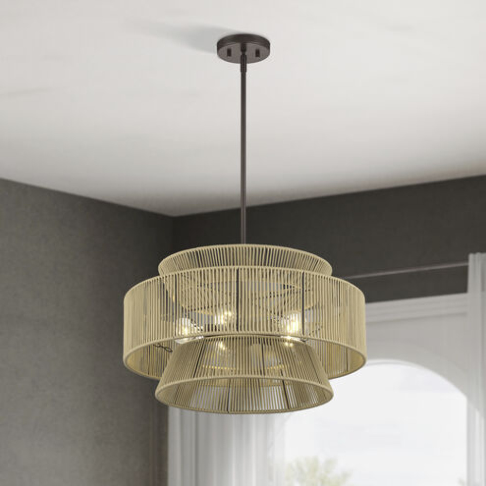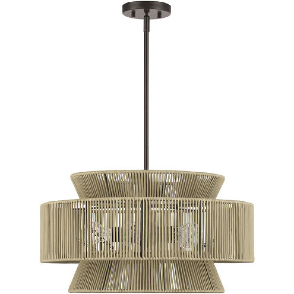 Laidback yet disciplined, the midcentury modern Florell lighting collection celebrates all versions of You: from “beach-haired weekender” to “visionary CEO”. with a vast selection in dramatic colors, this boho-inspired design features minimalist metal frames supporting drum-shaped, tapered and tiered shades – beautifully hand-threaded with sleek (fade- and fray-resistant) polyester rope. Semi-transparent texture allows for creating nuanced shadowing effects.