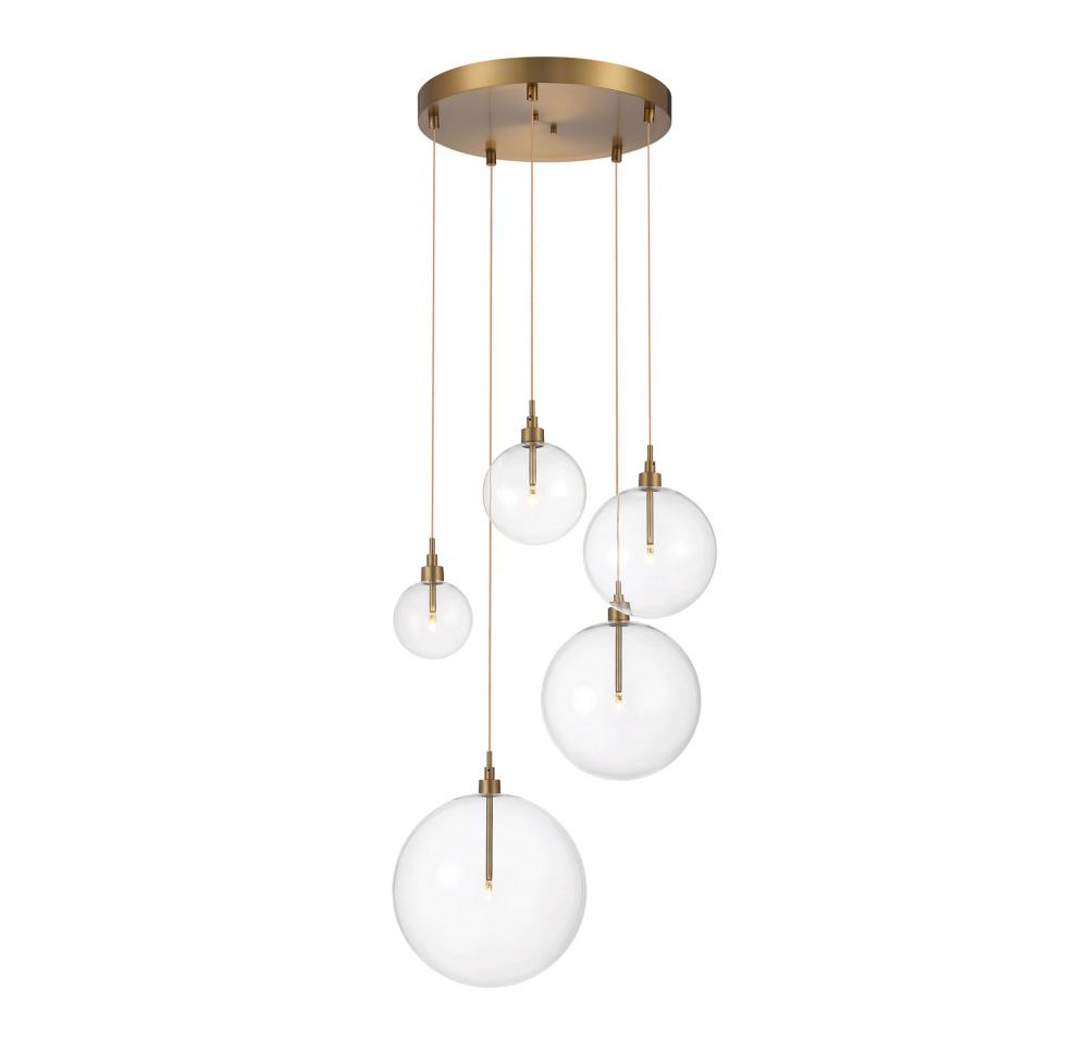5-Light Pendant in Natural Brass
