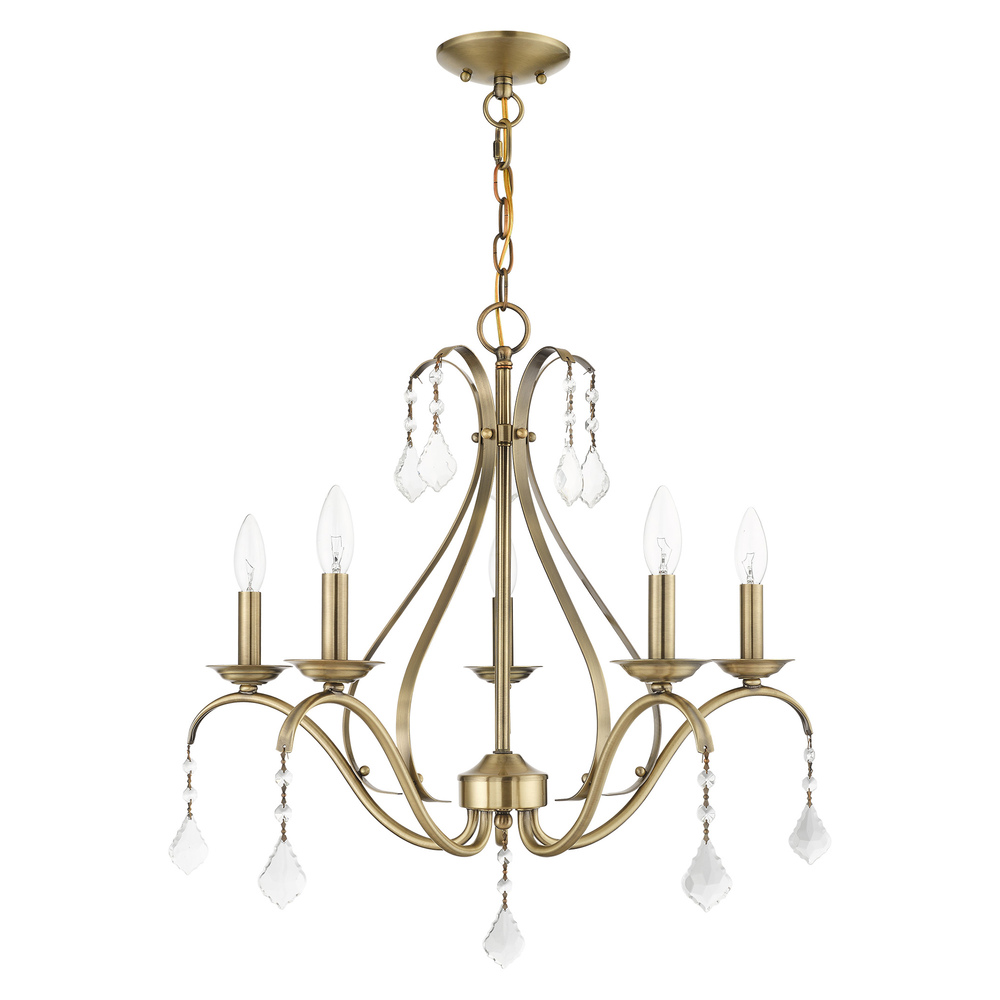 5 Light Antique Brass Chandelier