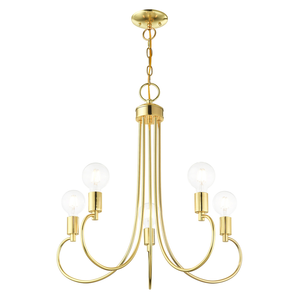 5 Lt Polished Brass Chandelier