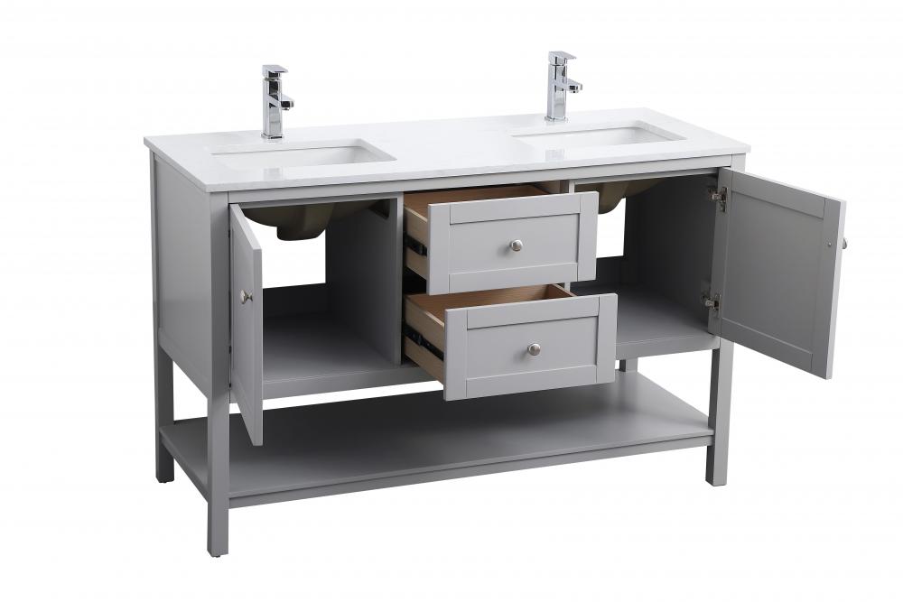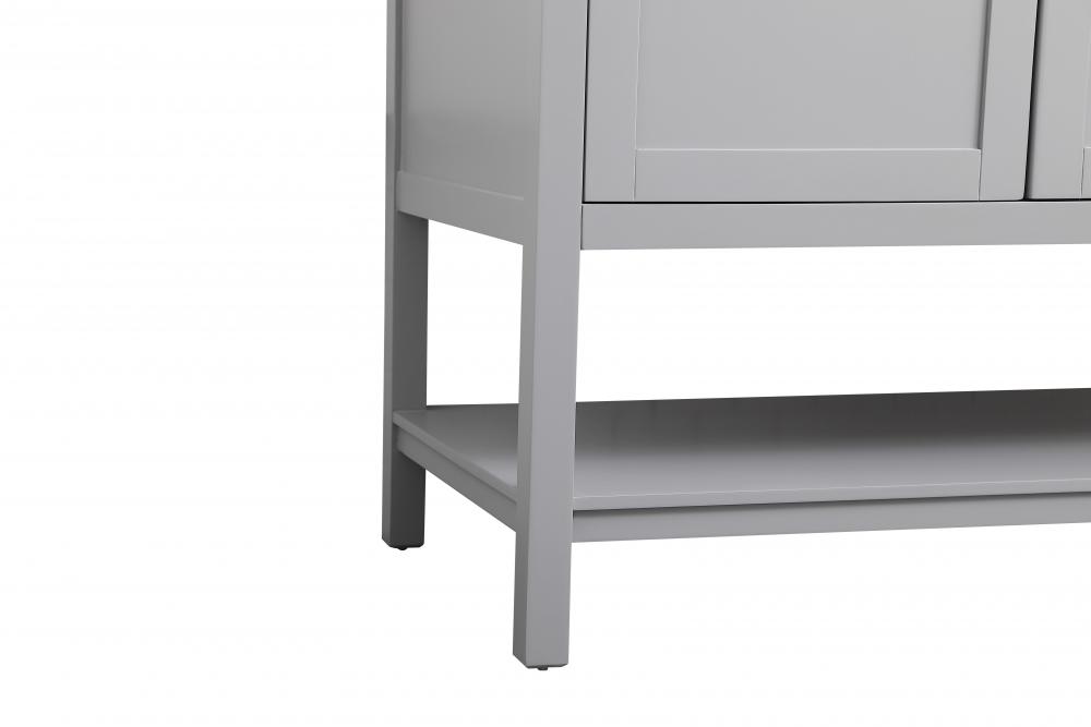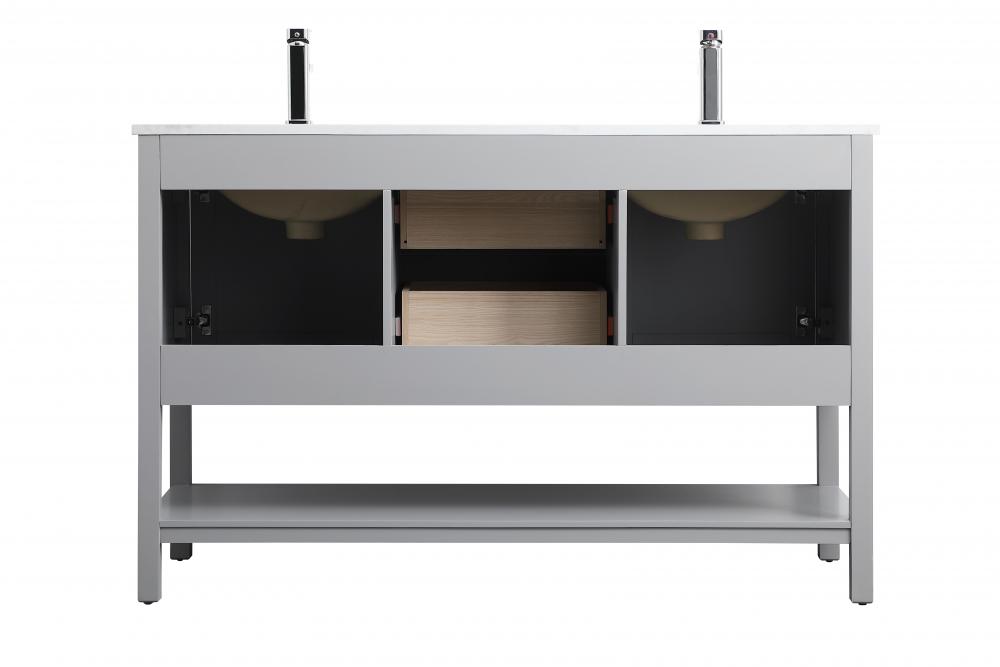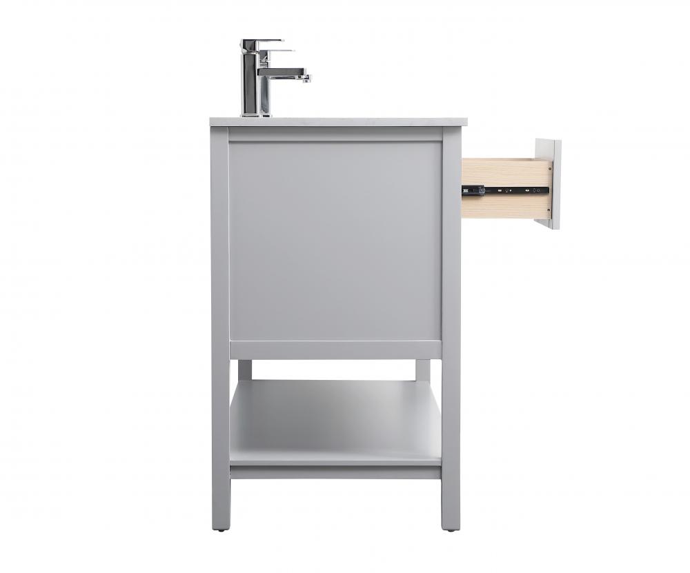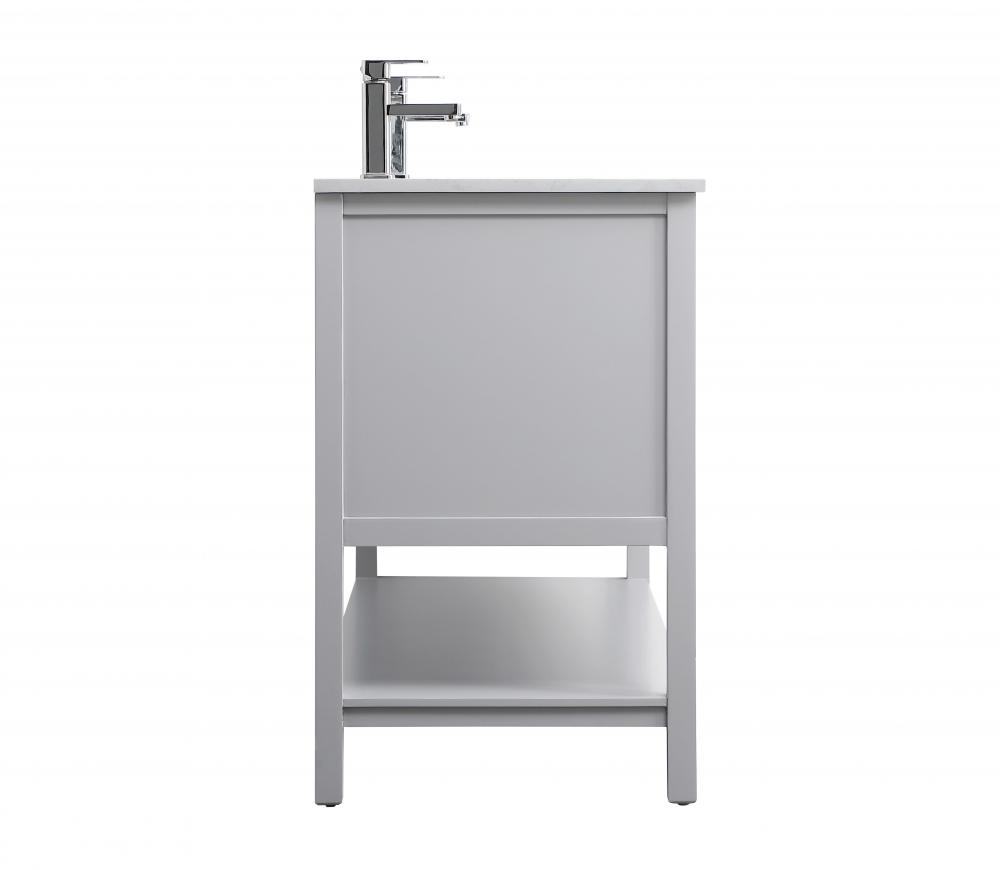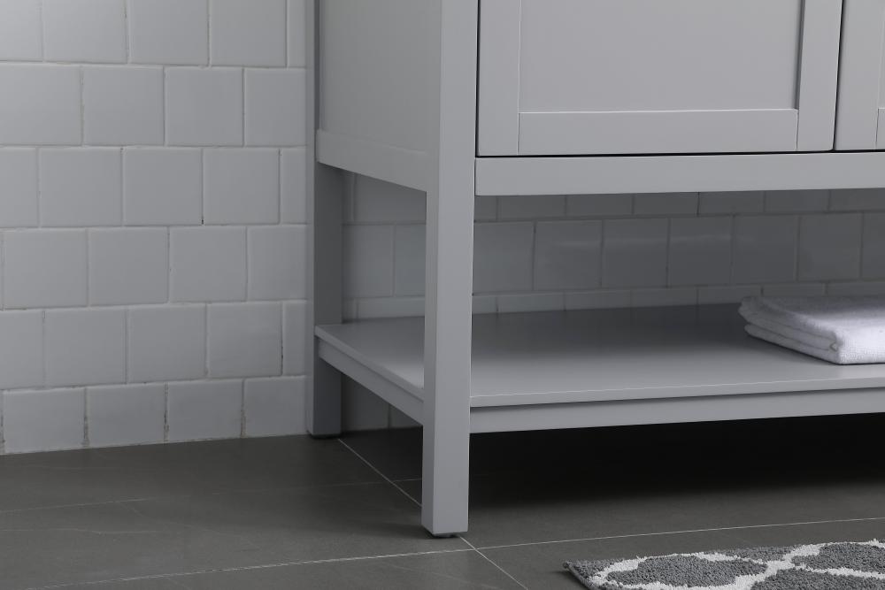 Boasting a lower open shelf for additional storage, this vanity offers a practical area to display decor or stow away essentials, seamlessly blending functionality with a touch of style for your bathroom.
