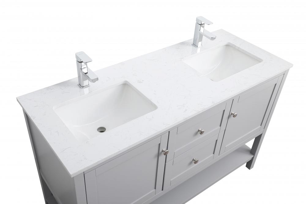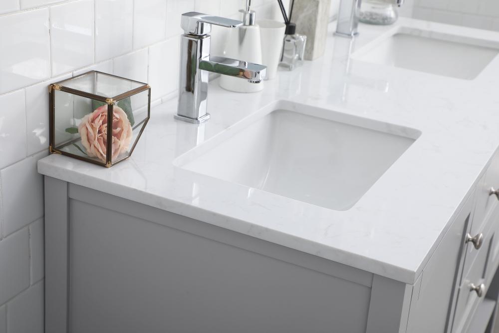 Displaying a chic straight edge cut and crafted with precision, our vanity boasts an engineered marble top that adds a dash of modern elegance to your space.
