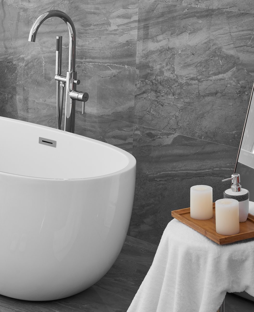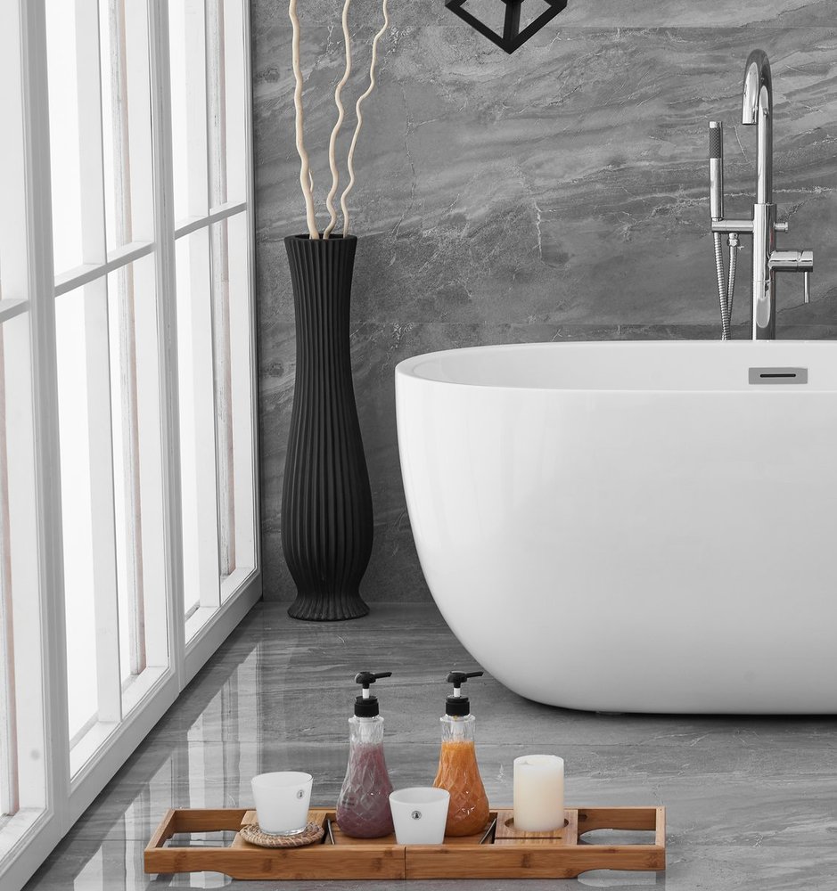 The curvature of this 53" roll top style bath tub allows for comfortable seating--and wouldn't you want to be as comfortable as possible while having a relaxing soak? The glossy white finish adds peaceful modernity to any bathroom--discard all your worries and bathe in elegance.
