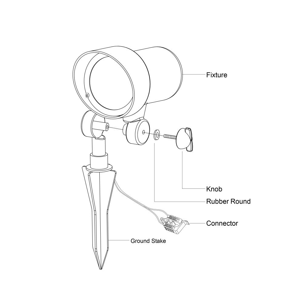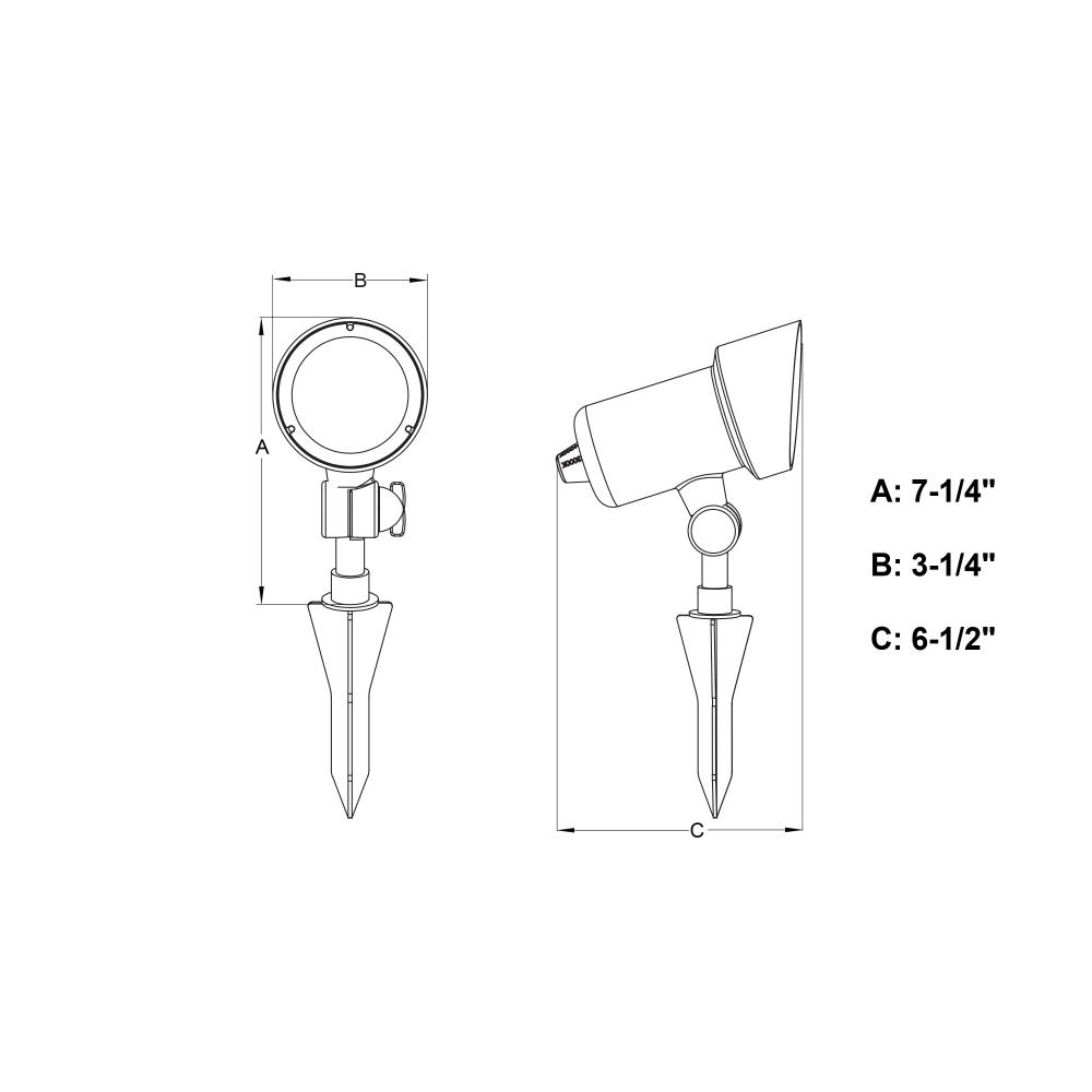 This contemporary low voltage landscape flood light with integrated LED is the perfect outdoor lighting solution. It offers functionality, energy savings, and security for your outdoor spaces. Rotate the single black light head vertically up or down to direct the light precisely where you need it. Bright 550 lumens of output plus three selectable color temperatures - 3000K warm white, 4000K bright white, 5000K daylight - allow you to choose the quality of brightness. Connect this stake spot light with other landscape lighting products to customize and highlight your outdoor spaces. Ground stake and connector cable included. Low voltage transformer required (sold separately).