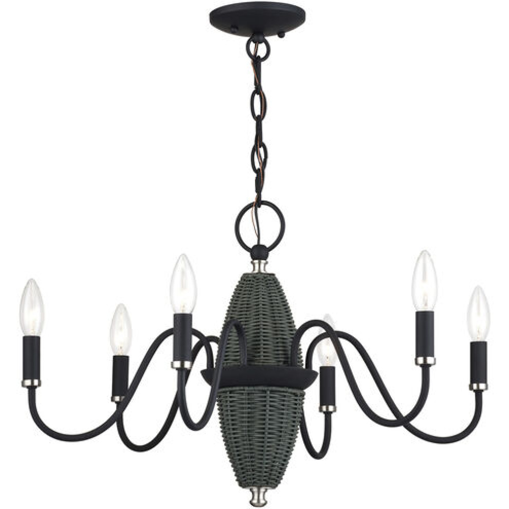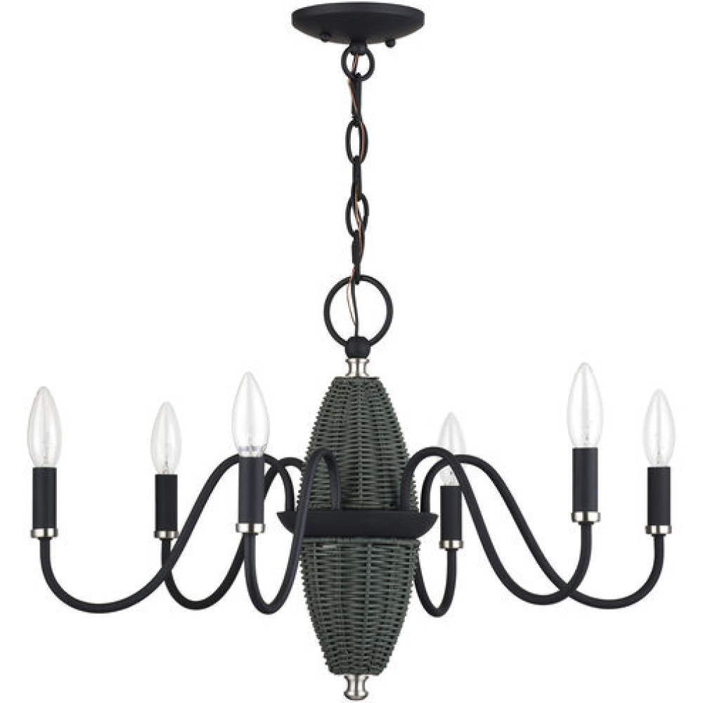 Modern sophistication and rustic charm go hand in hand with the alluring Laurelin lighting collection, designed to add soft brilliance, velvety colors and textural contrasts to transitional interiors. This curvilinear candelabra-based design features a spindle-shaped handwoven rattan column (available in brightening rustic walnut or rich charred gray), banded by elegant S-shaped metal branches holding up delicate candle sleeves.