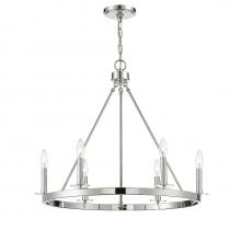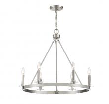 Featuring a stylish wagon-wheel shape, this Meridian 6-light chandelier offers up chic and versatile lighting for a wide variety of spaces and decor styles. Use it to brighten up a dining table, a living room, a bedroom…the possibilities are endless! Finished in matte black. This chandelier is 22" in height and 26" in width, plus it includes 120" of chain to let you adjust the height. This chandelier uses 6 candelabra size bulbs of up to 60 watts each, is LED compatible and is dimmable.