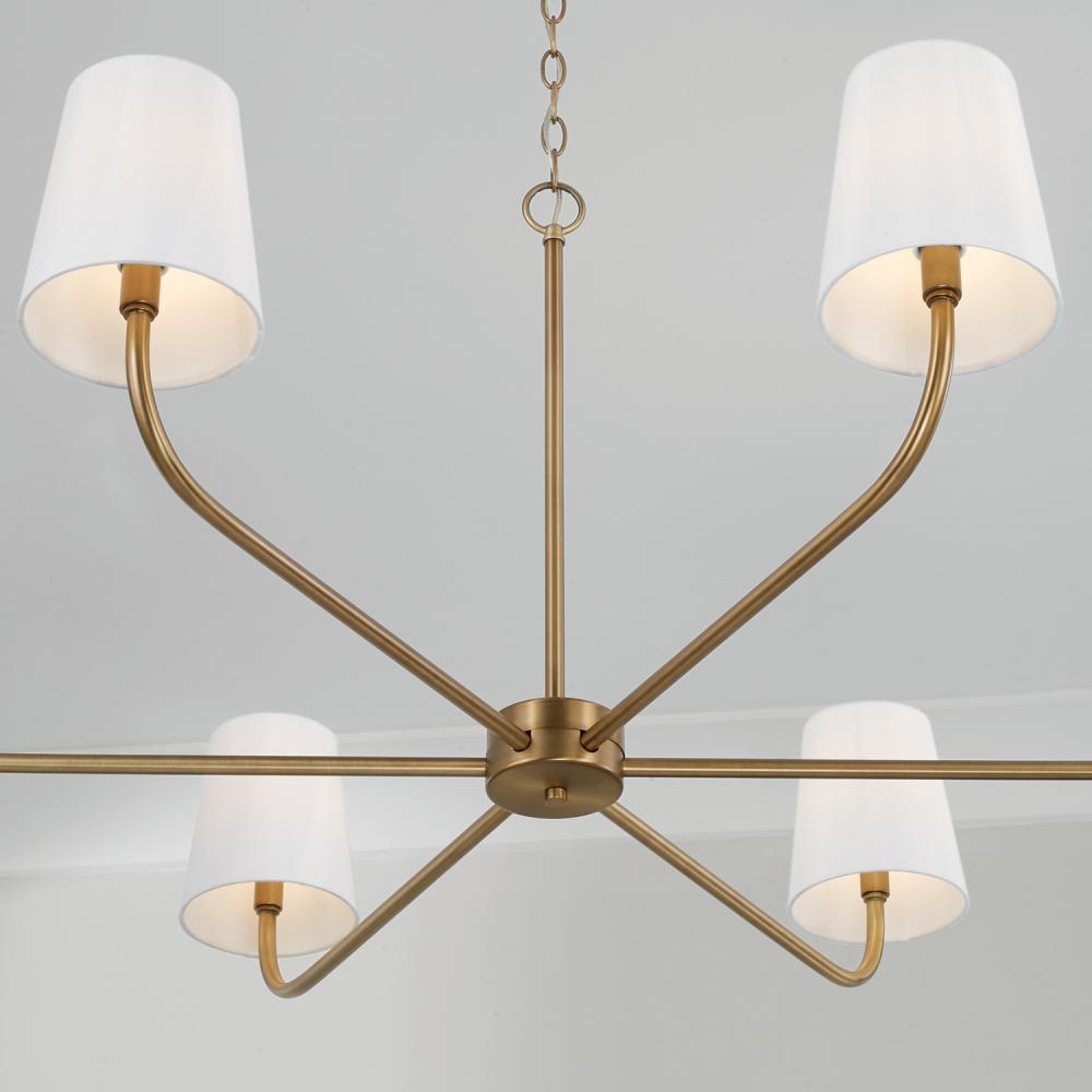 47"W x 21.25"H 6-Light Chandelier in Aged Brass with White Fabric Stay-Straight Shade