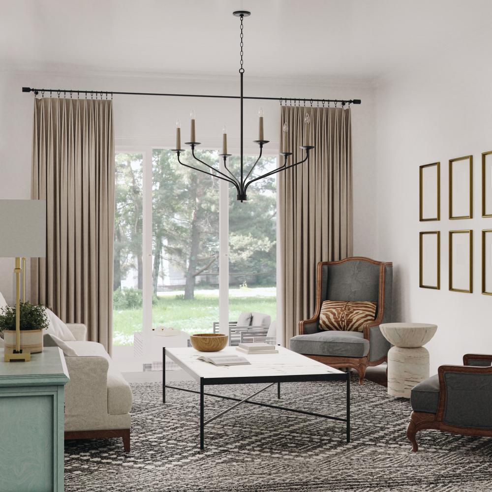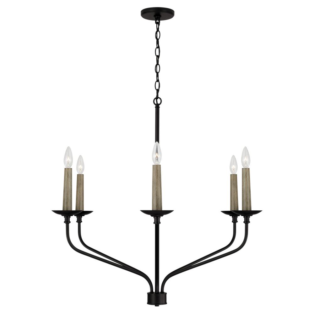 Pairing the Matte Black finish with designer details, the Wilder Medium Chandelier brings classic elegance with an (optional) element of nature. Available in Faux Wood and Matte Black, the interchangeable candle sleeves create a custom-made feel for high design that suits any style.