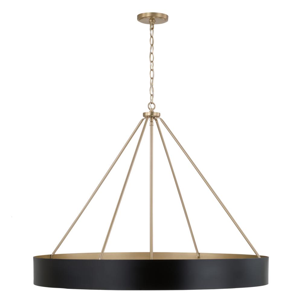 Contemporary style with classic appeal. The Weller 6-Light Chandelier combines an elegant, circular silhouette with angled lines for a sleek aesthetic. The Matte Black finish with painted Matte Brass interior brings mixed metal intrigue and a hint of shine.