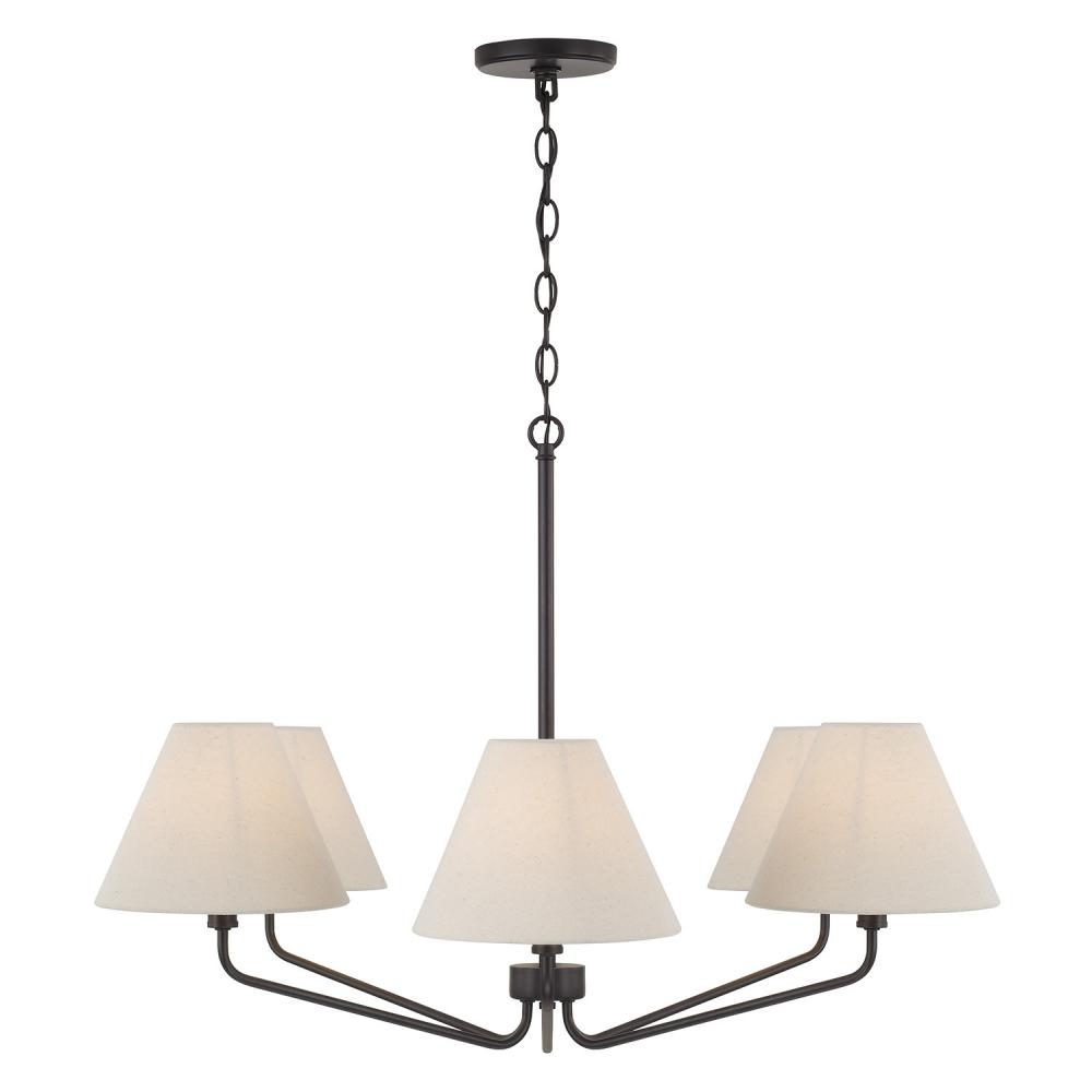Soft angles and classic style create the Chadwick Medium Chandelier. With subtle speckles on Soft Tan, the tapered fabric shades add visual warmth and texture, while the elegant metal arms are finished in Espresso for sophisticated contrast.