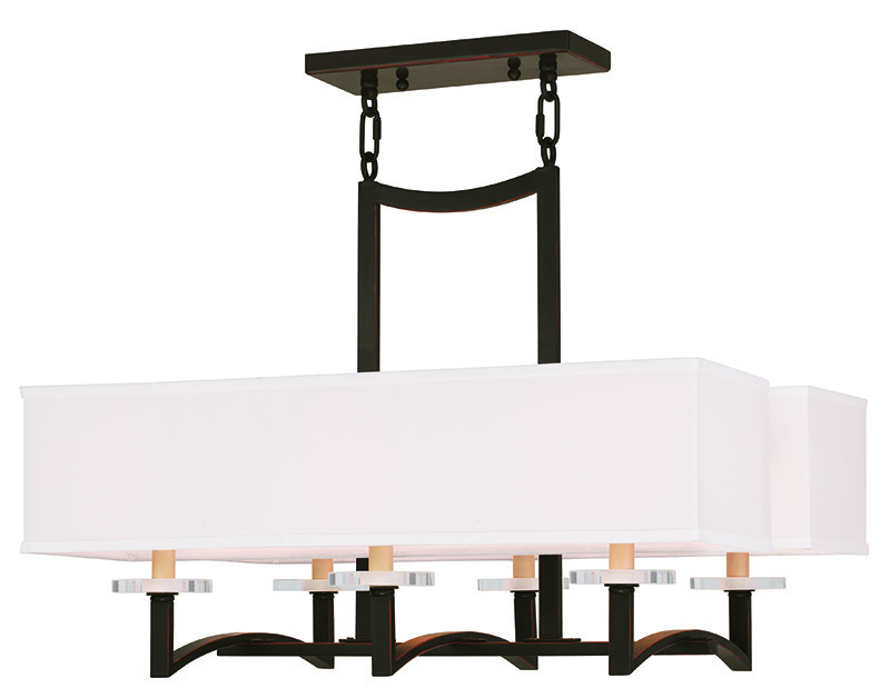 Featuring Oversized Hand Crafted Off White Fabric Hardback Shades And Crystal Bobeches, This Woodland Park Linear Chandelier Is Framed And Finished In Olde Bronze. It'S A Wonderful Way To Give A Broad And Handsome Light To Dining Tables And Kitchen Islands. The Woodland Park Is A Must Have Item For A Timeless Look In Any Room.