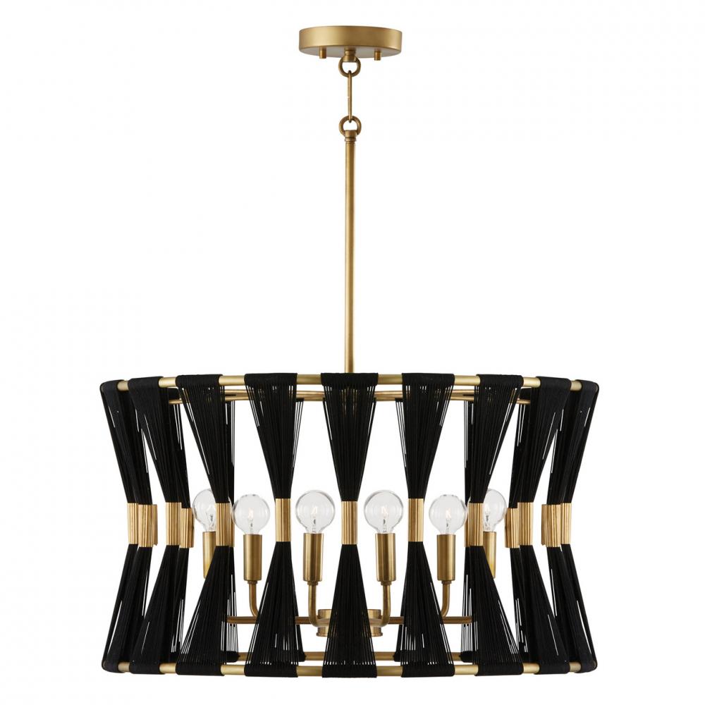 Inspired by mid-century pinched pleats, the Bianca 6-Light Pendant is full of bespoke beauty. The material mix of bleached natural rope and slightly distressed Patinaed Brass creates contrast and drama for a custom look.