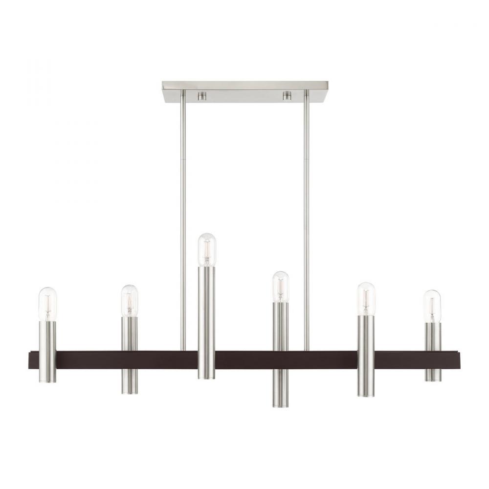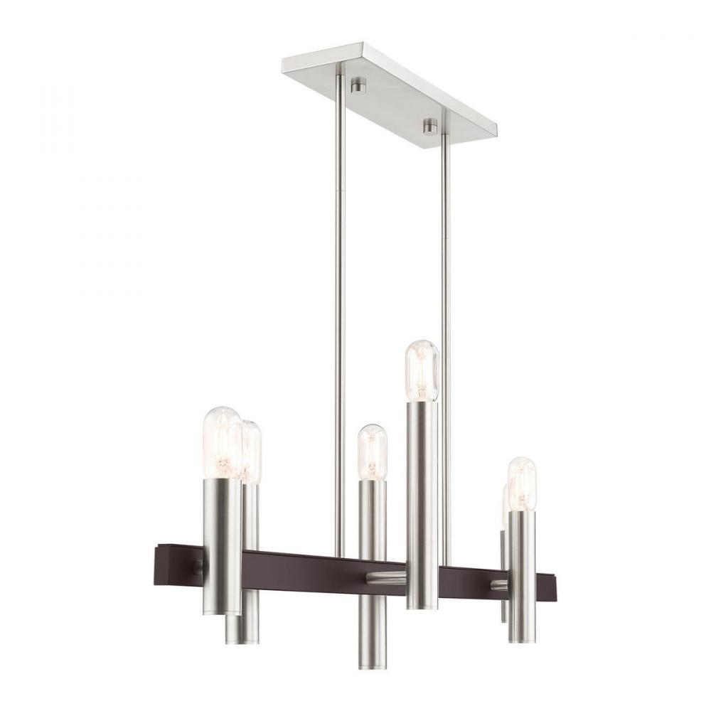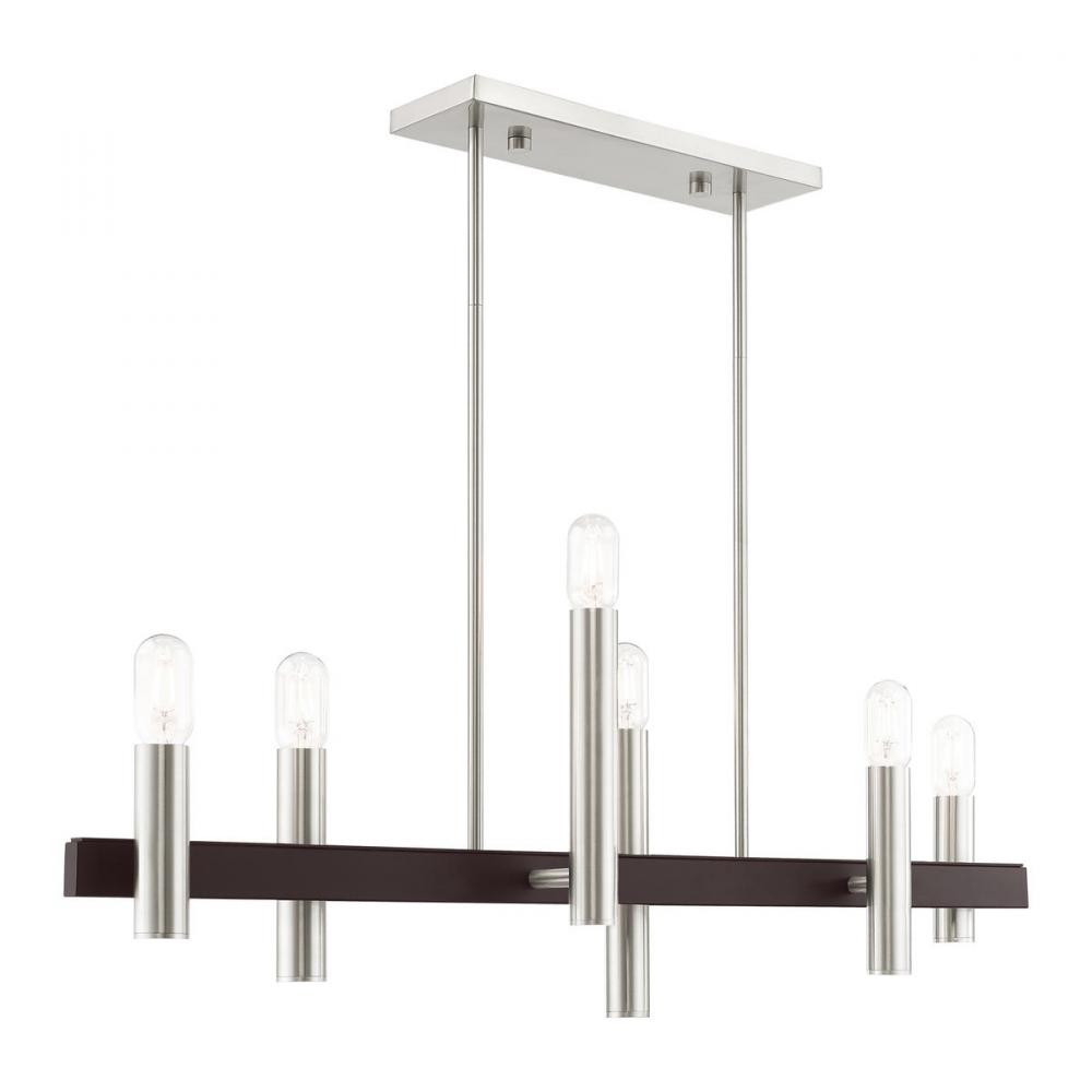 6 Lt Brushed Nickel & Bronze Linear Chandelier