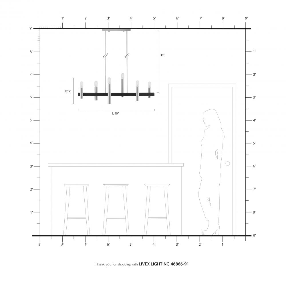 8 Light Black Extra Large Linear Chandelier with Brushed Nickel Accents