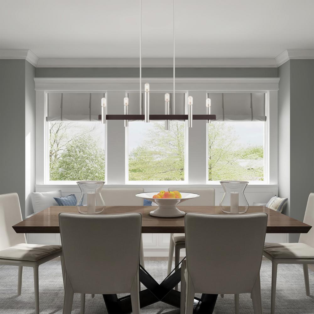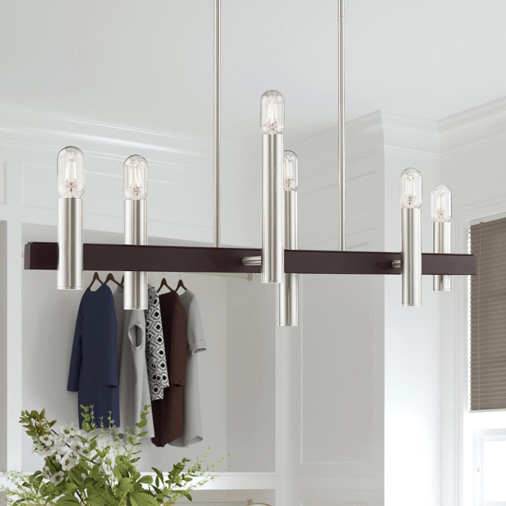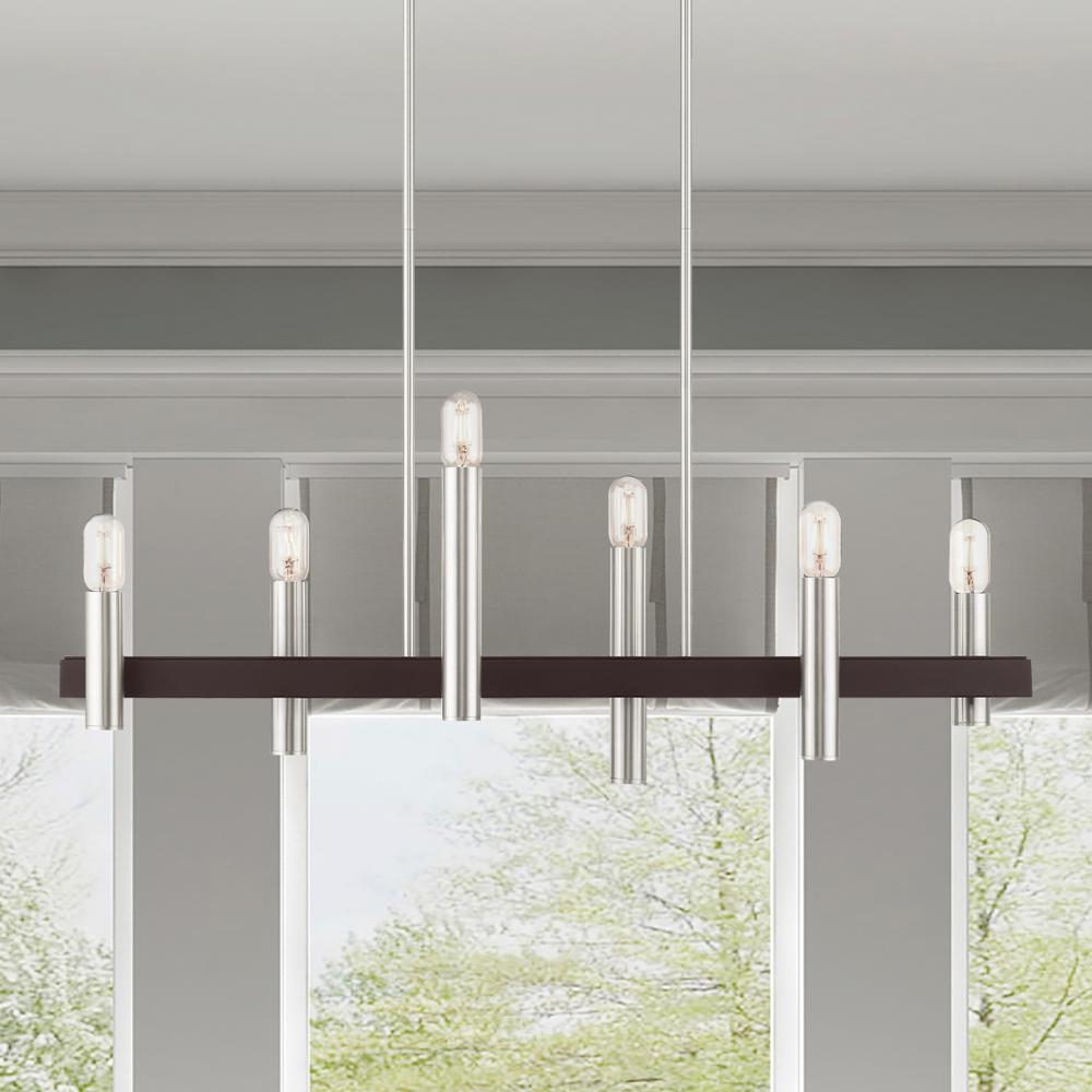 6 Light Brushed Nickel & Bronze Linear Chandelier