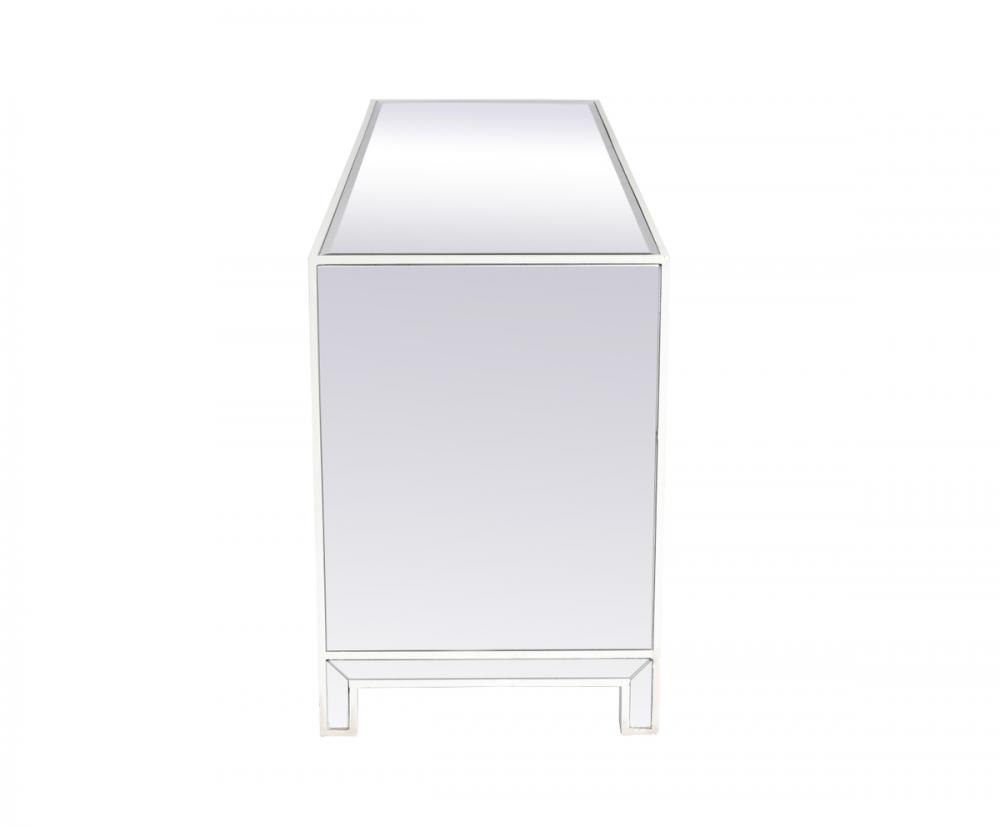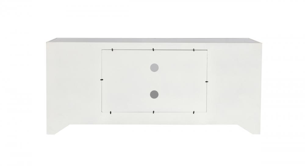 Upgrade your home entertainment experience with our 60-Inch White Mirrored TV Stand. With its stunning design, practical features, and various finish options, it's the perfect addition to your home decor. Experience the epitome of style and convenience with a TV stand that's as impressive as your entertainment system. Say goodbye to cable clutter! The back panel is intelligently designed with a cord management cutout, allowing you to easily organize and conceal wires, maintaining a clean and organized living space.