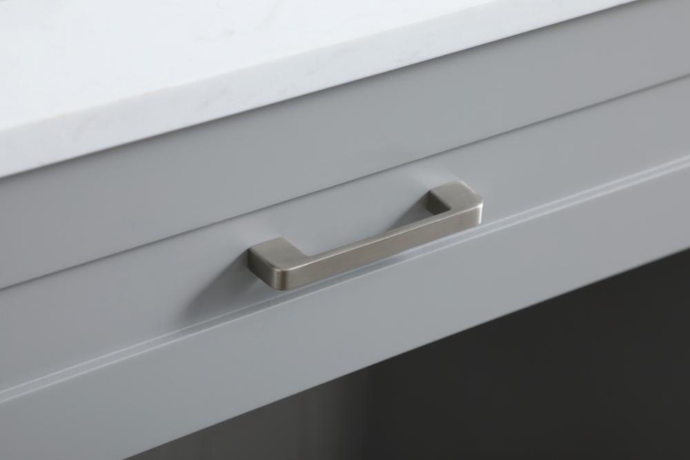 Step into a bathroom oasis that redefines inclusivity and elegance with our Handicap ADA Compliant Bathroom Vanity. Designed with careful consideration for accessibility, this vanity accommodates wheelchair access effortlessly. The undermount porcelain sink, set upon a durable Calacatta look engineered marble stone top, brings an air of opulence to your space. Customize your vanity with the versatile predrilled countertops, allowing you to choose faucets that suit your taste. The soft closing drawers ensure a serene and peaceful environment, complemented by the fully assembled and ready-to-use design for instant gratification. The optimal knee clearance and discreetly placed overflow hole in the porcelain sink further enhance the functionality of this vanity. With three functional drawers, two cabinets, and stainless steel knobs, organization and aesthetics seamlessly intertwine. Choose our Handicap ADA Compliant Bathroom Vanity for a space that embodies accessibility without compromising on luxury. Redefine your daily rituals with a vanity that caters to everyone's needs while adding a touch of sophistication to your bathroom sanctuary.